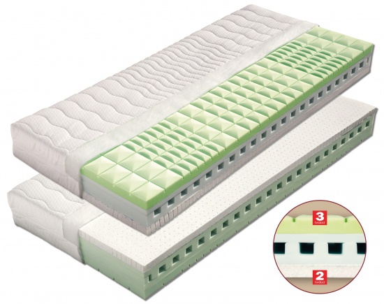 Profilovaná matrace kombinovaná s elastickou pěnou a Gel-Latexem. Gel-Latex je chladivý, měkký ale zachovává si svou elasticitu a pružnost. Jádro matrace a druhá nosná vrstva je složena z tvrzené pěny MediFoam. Střed matrace je provzdušněn příčnými průřezy tak, aby byla dokonale zajištěna cirkulace vzduchu. Matrace je vhodná na všechny typy roštů. Matrace lze vybrat v potahu SILVERGUARD,MEDICOTT,LYOCELL - antibakteriální potah nebo LEVANDULE - s relaxačními účinky. V objednávce prosím uveďte Vámi vybraný potah. Výška matrace včetně potahu 21 cm. Matrace do hmotnosti 130 kg. K této matraci nabízíme jako dárek zdarma 1x polštář Lukáš.