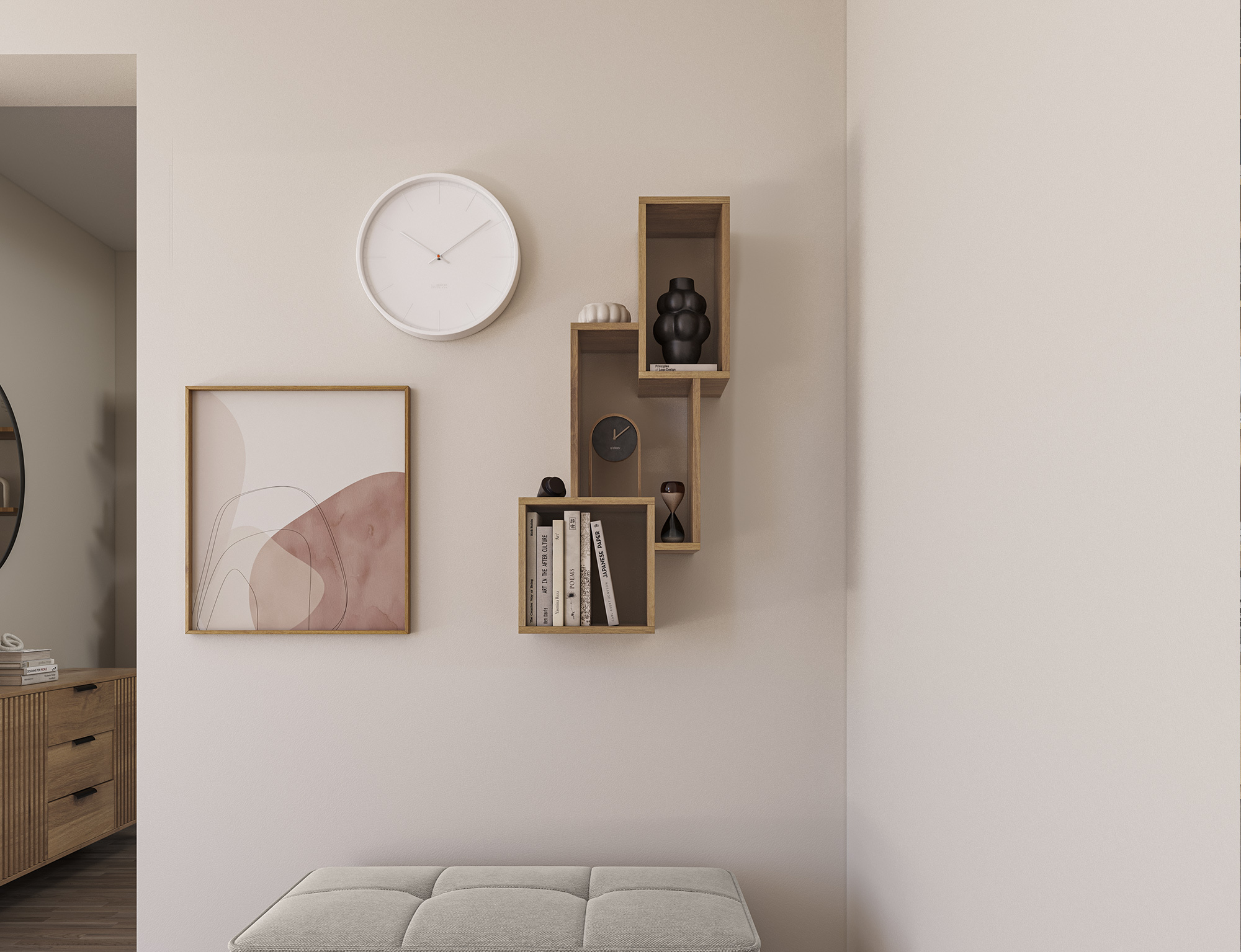 The Alitty hanging shelf is a stylish and functional interior feature, consisting of three smaller shelves of varying sizes. The total dimensions of the set are 96x46x25 cm. Each shelf differs in size, allowing for an attractive arrangement of items of various dimensions, creating an interesting visual display on the wall. This shelf is an ideal solution for the living room, bedroom, office, or hallway. With its modern design and versatile dimensions, the Alitty shelf complements various interior styles, adding both character and functionality. It's perfect for holding books, decorations, plants, and other small items you want to keep within reach or showcase.