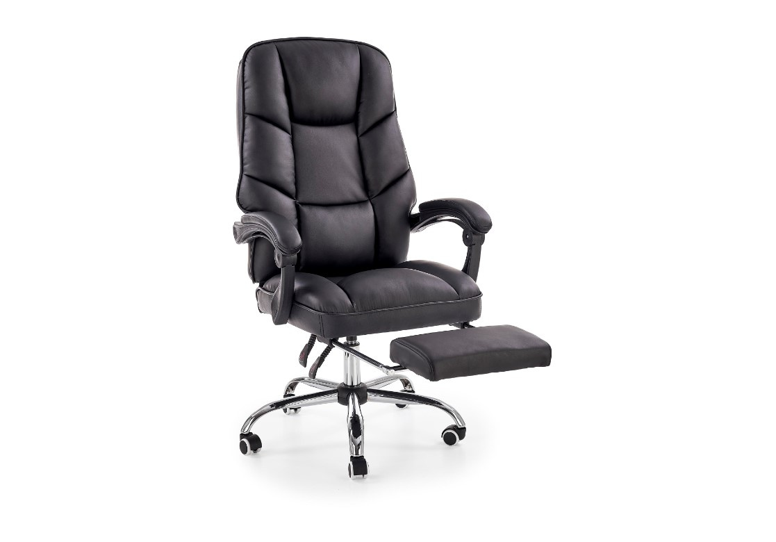 Elegantní kancelářské křeslo Alvin s nastavitelnou výškou a mechanismem TILT je vyrobené z eko kůže v dezénu černá. Kancelářské křeslo Alvin ocení milovníci moderního designu. Křeslo vyniká vysokým opěrákem, který poskytne zádům tu správnou oporu. Designovým prvkem jsou područky a vysouvací podnožka na nohy. Křeslo disponuje kolečky, které zajišťují plynulý a bezpečný pohyb při práci. Nosnost křesla do 120kg. Zboží dodáváme v demontu.