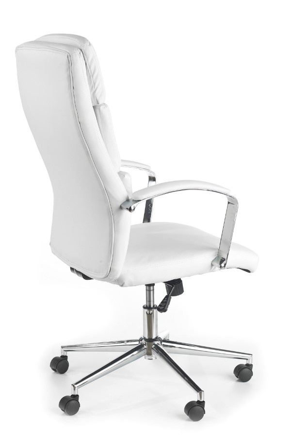 Výškově nastavitelné křeslo s mechanizmem TILT je vyrobeno z materiálu eko kůže v dezénu bílá. Pomocí šroubu, který se nachází pod sedákem, je možné nastavit volné houpání nebo blokaci vertikální polohy kdykoliv během práce. Výšku židle lze nastavit pomocí plynového pístu, který se ovládá páčkou umístěnou pod sedadlem židle. Maximální nosnost je 115kg. Zboží je dodáváno v demontu.