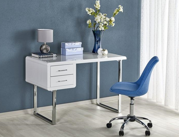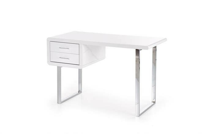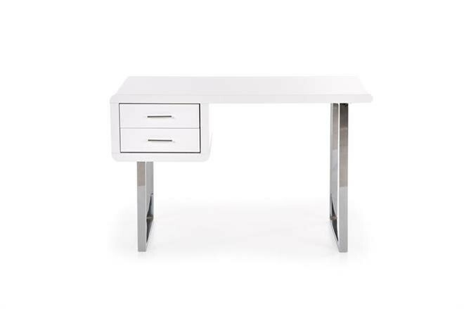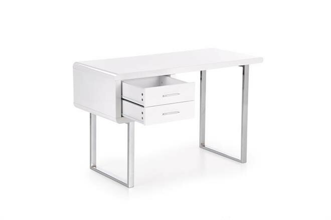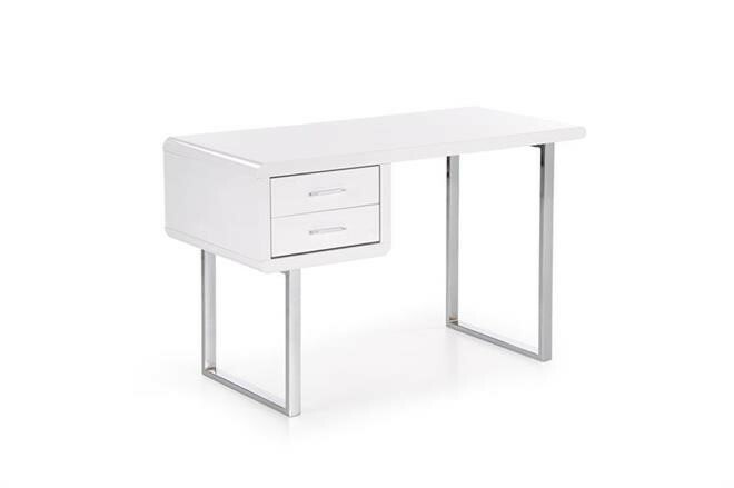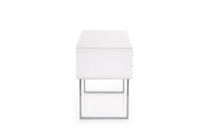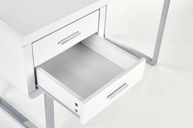 Toaletní stolek je vyroben z materiálu MDF vysoký lesk / ocel chromovaná v barvě bílá. Pevná konstrukce z lakované oceli se postará o celkovou stabilitu stolu. Dvě praktické zásuvky po straně stolku jsou skvělým řešením pro uložení potřebných věcí nebo drobností, které potřebujete mít při práci po ruce. Zásuvky jsou umístěné na kovových pojezdech. Zboží je dodáváno v demontu.