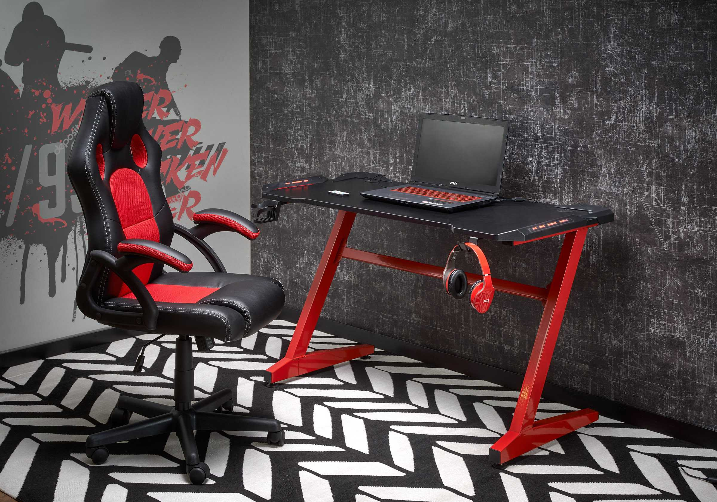 Herní stůl B-49 má desku desku vyrobenou z dýhované MDF v černé barvě a nohy z práškově malované oceli v barvě červená. Tuto barvenou kombinaci podtrhuje LED osvětlení. Na nápoj a příslušenství jsou dva samostatné držáky, které zvyšují komfort používání. Maximální nosnost 40 kg. Zboží dodáváme v demontu.