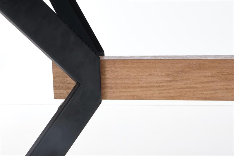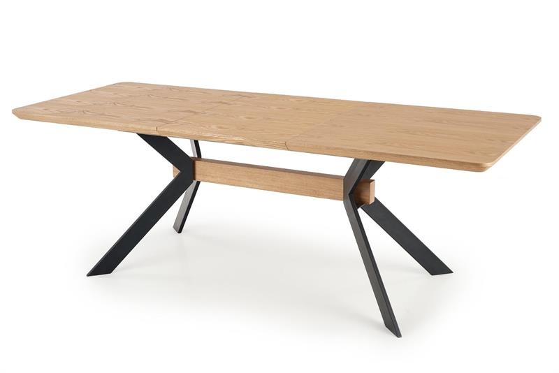 Elegantní rozkládací jídelní stůl. Deska jídelního stolu v obdélníkovém tvaru je v kombinaci provedení MDF a přírodní dýhy v barvě dub přírodní. Horní desku je možno rozložit až do 220 cm. Nohy jsou z kvalitní oceli v černé barvě, které zajistí vynikající stabilitu stolu. Zboží dodáváme v demontu.