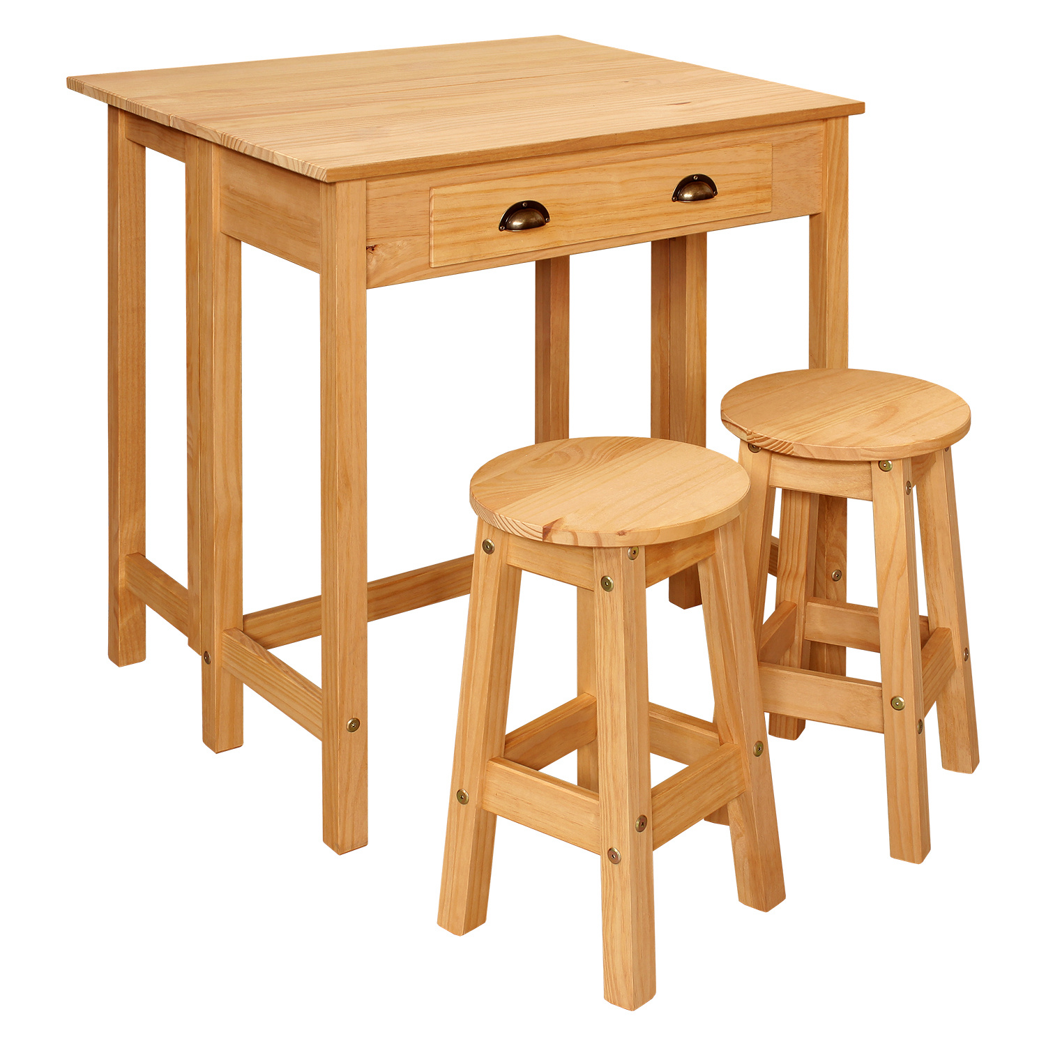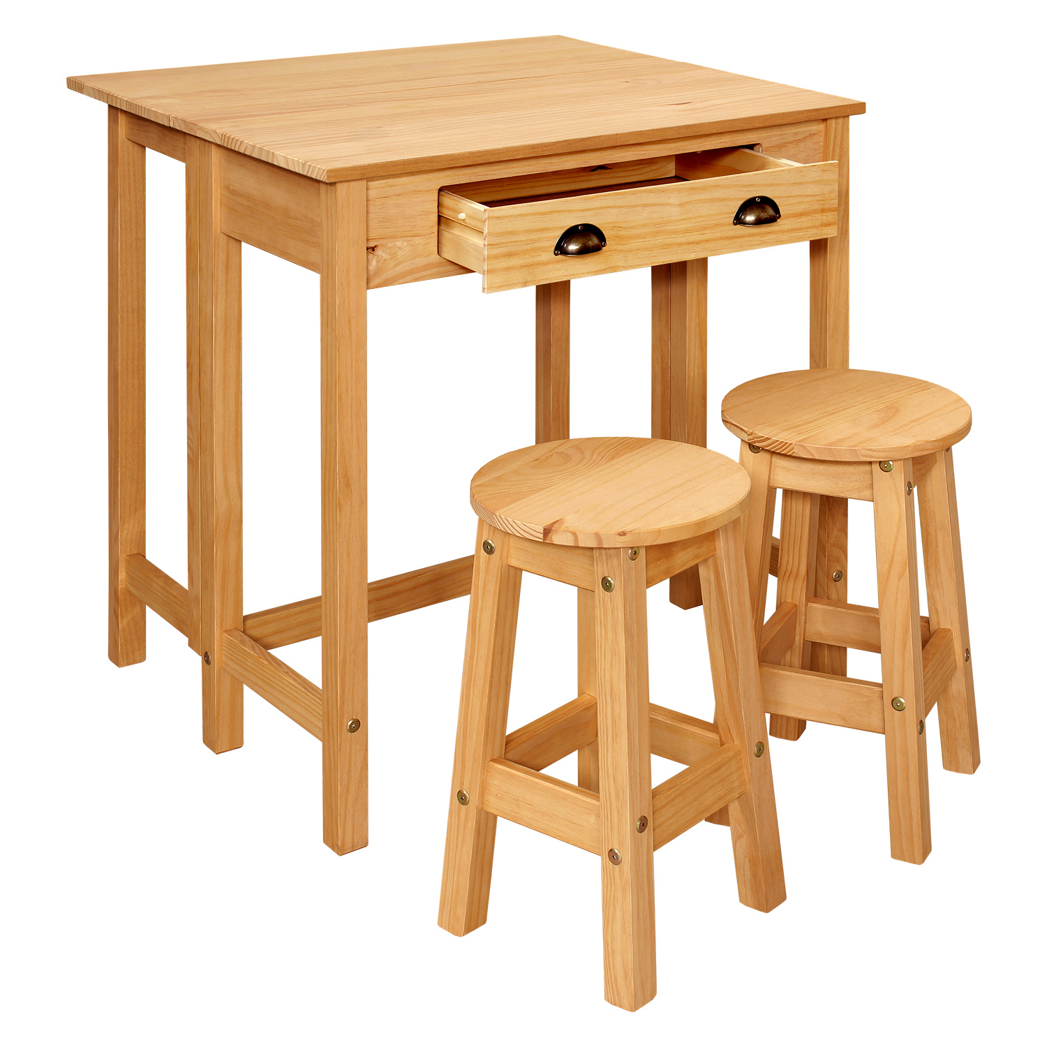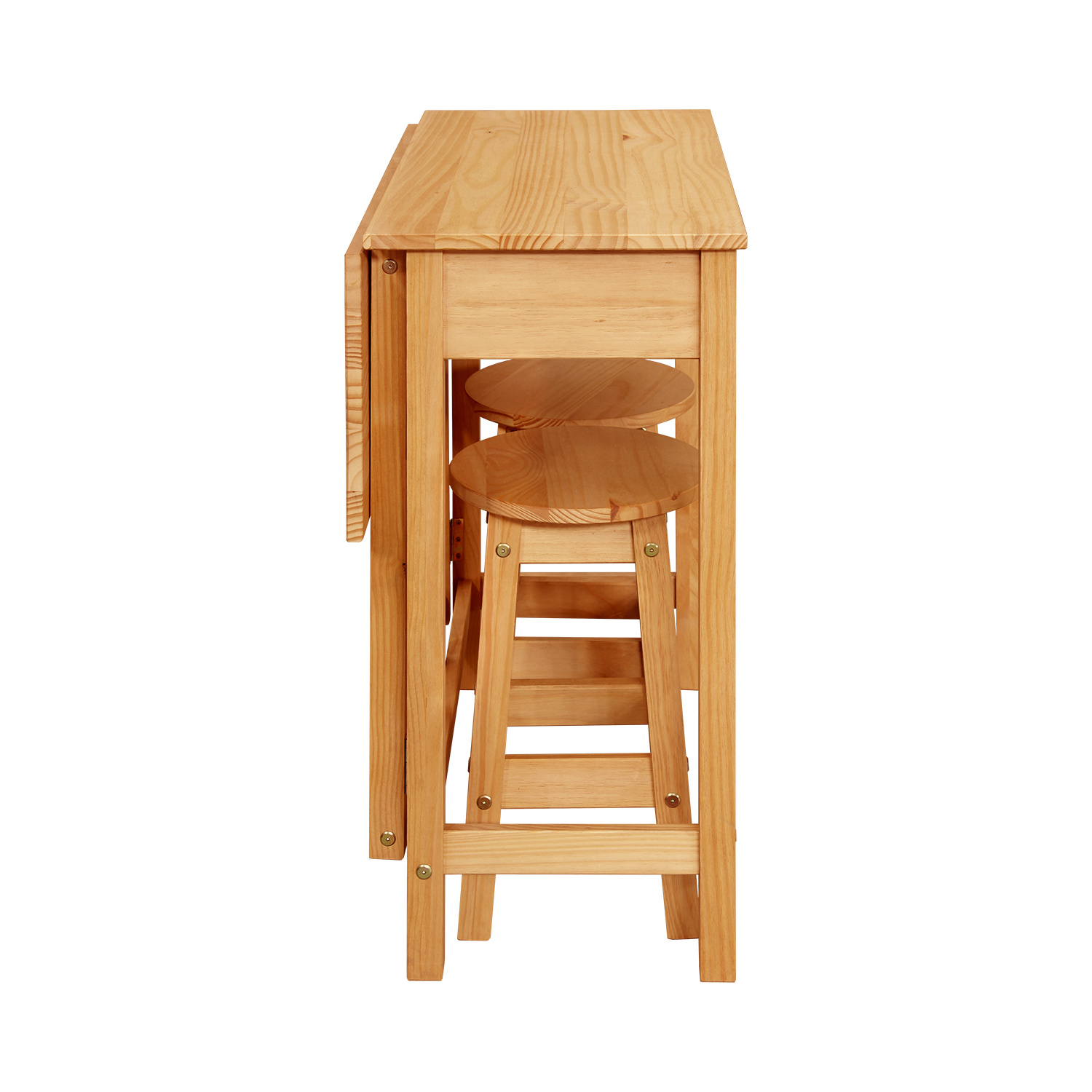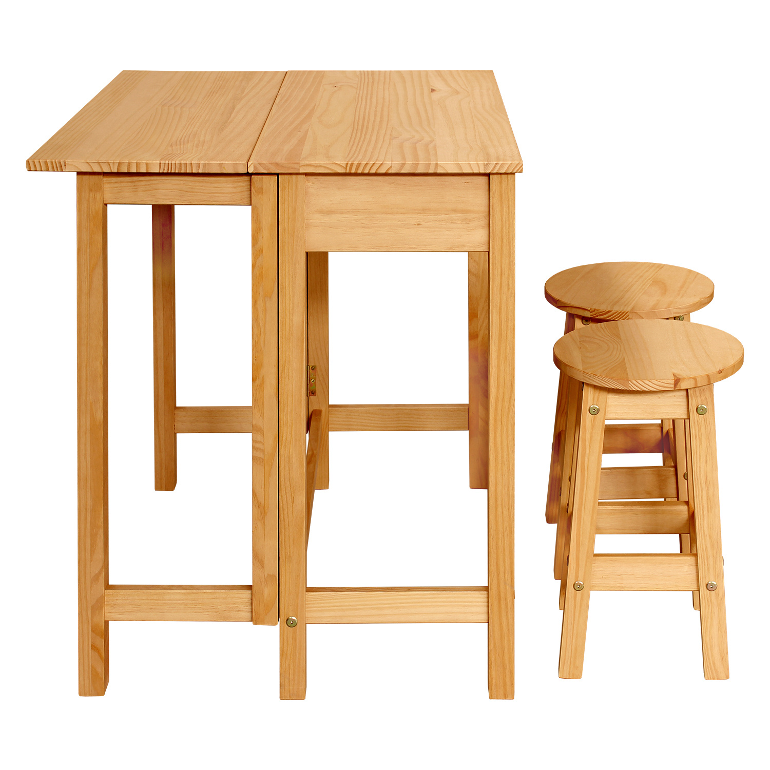 materiál masiv borovice voskovaná v medovém odstínu skládací stůl se zásuvkou dvě barové židličky