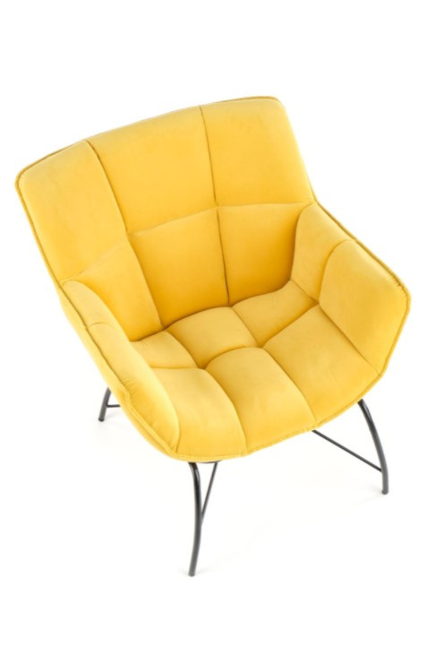 Elegantní křeslo BELTON se hodí do každé moderní domácnosti. Křeslo je čalouněné v barevném provedení žlutý samet. Stojí na čtyřech nožičkách z práškované oceli v černé barvě. Křeslo se pyšní stylovým prošíváním, které mu dodává na eleganci. Zboží je dodáváno v demontu.