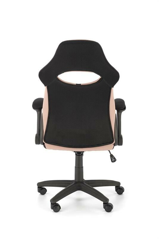 Kancelářské křeslo je potaženo látkou odolnou proti protržení a oděru v barevném provedení růžová/ černá. Křeslo je vybaveno mechanikou TILT, která umožňuje snadné nastavení výšky sedáku s možností zablokování v základní poloze. Pro větší pohodí křeslo disponuje zvýšenými područkami. Zvýšený opěrák nahrazuje klasickou hlavovou opěrku a zmírňuje bolesti krční páteře. Kříž židle je z černého tvrzeného plastu a pohyb židle zajišťuje pět kvalitních plastových koleček. Maximální nosnost křesla je 100 kg. Zboží dodáváme v demontu.