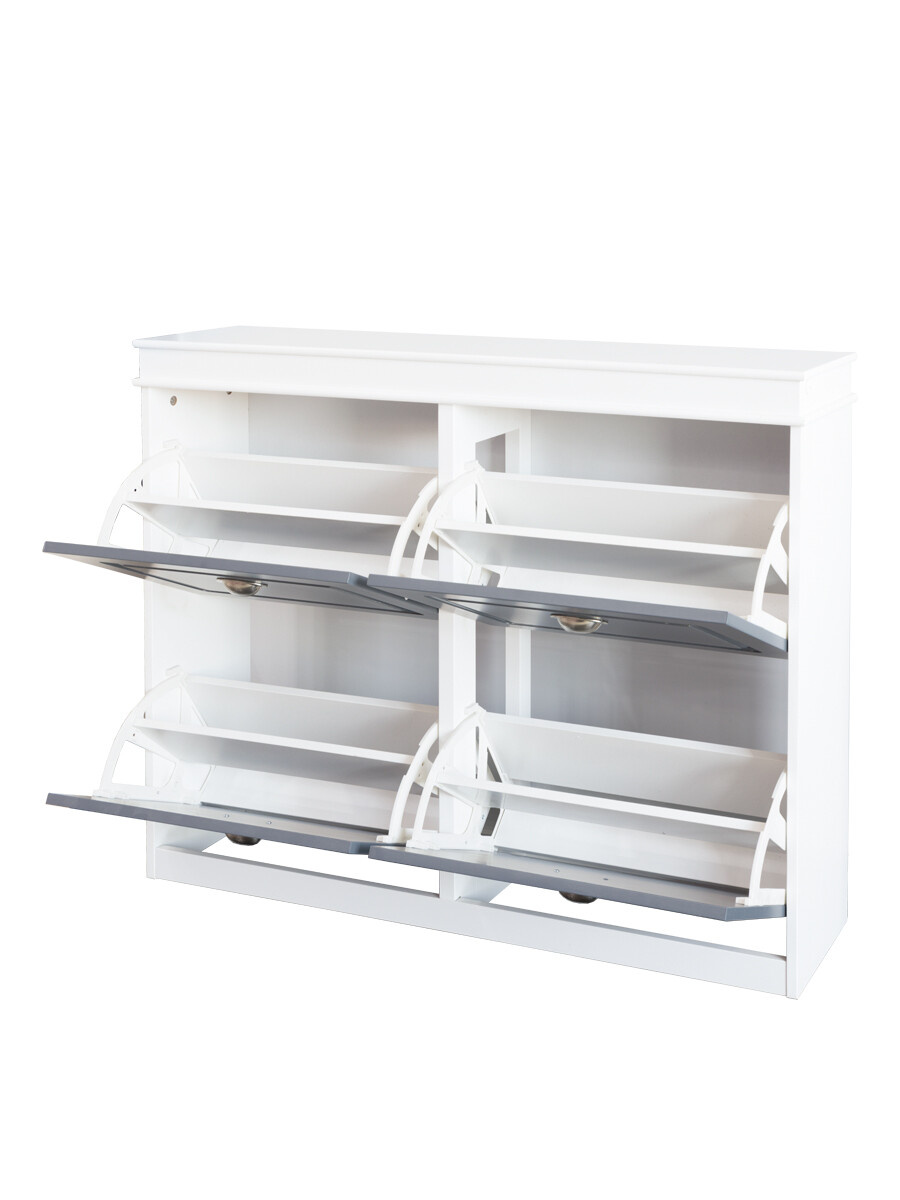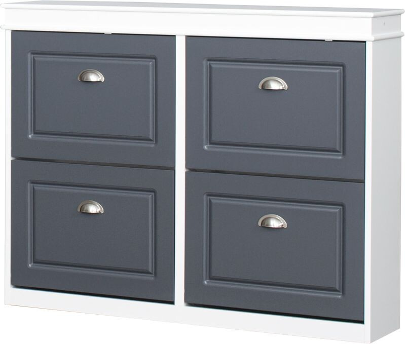 Botník ALESSA 1 z lamina v provedení bílá/ šedá se sedákem umožňuje jeho použití jako sedačky. Šedá reliéfní čela skříňky s jemnými úchyty. Zboží je dodáváno v demontu.