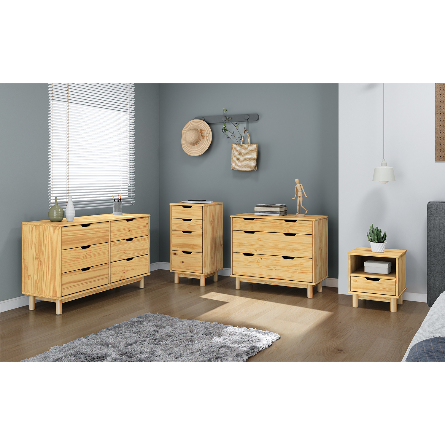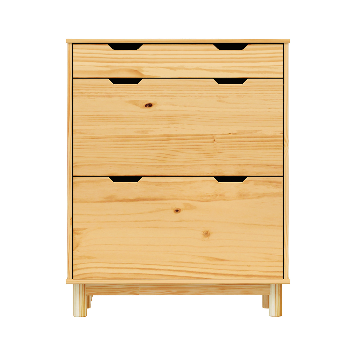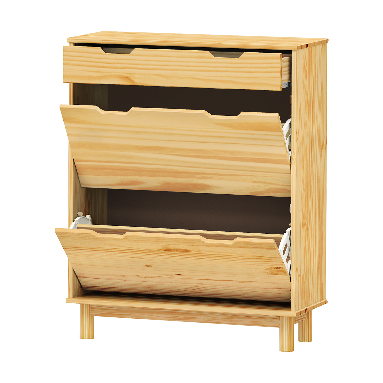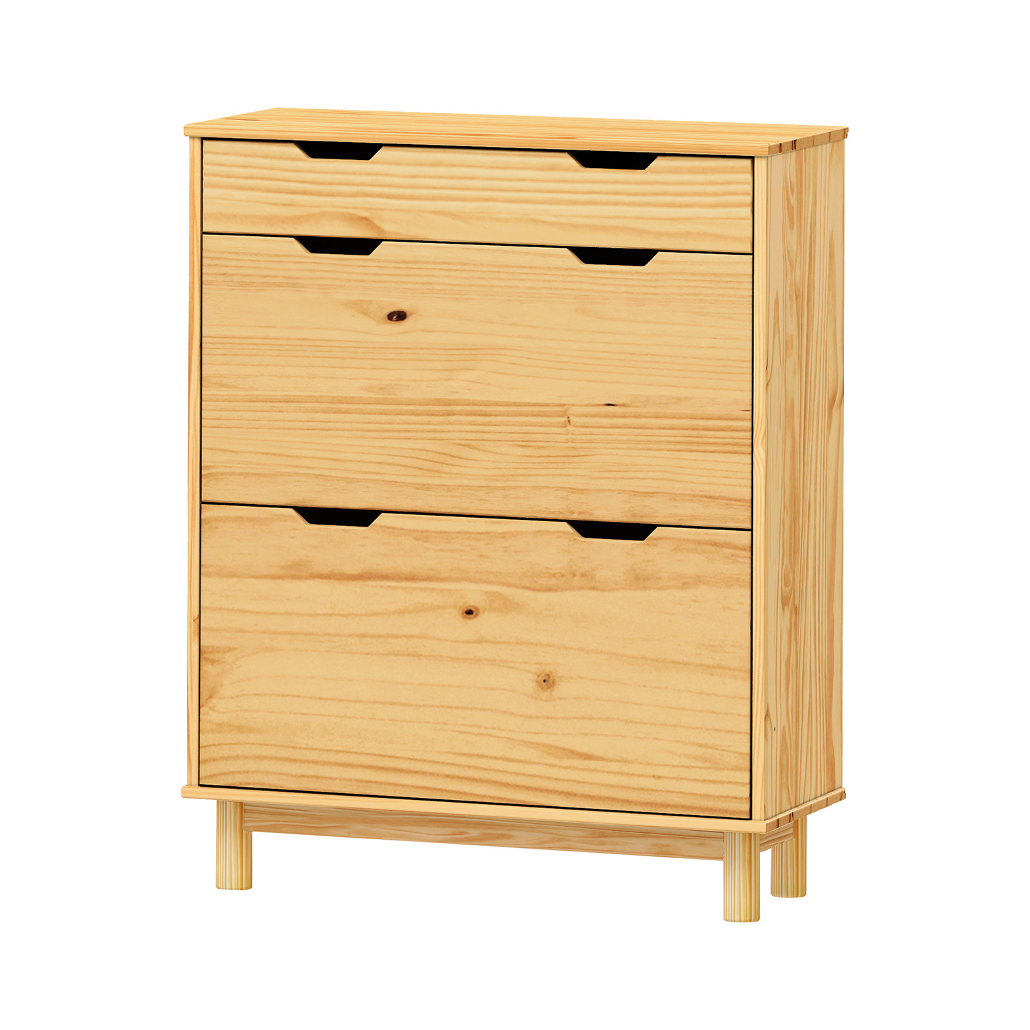 materiál masiv borovice, lakované provedení 1 zásuvka s kovovými pojezdy, 2 dvouřadé výklopy