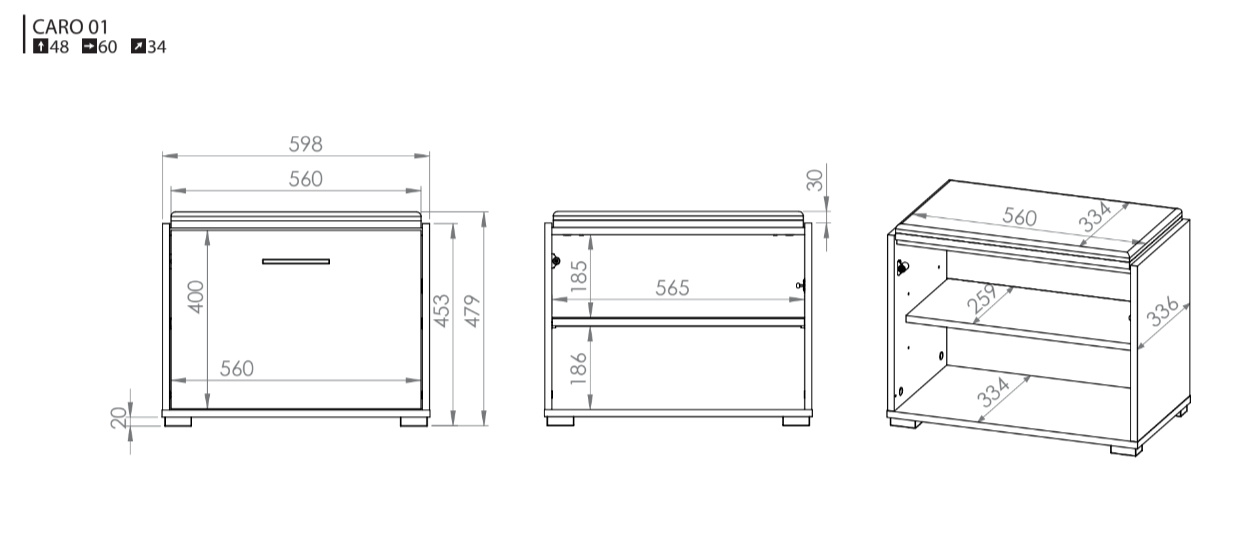 Botník s výklopnými dvířky je vyroben z kvalitního lamina o tl.16 mm v dezénu sonoma světlá. Sedací část botníku je doplněna o pohodlné polstrované sezení v barvě černá. Tento botník je doplněn o černé nožičky a úchytku. Zboží je dodáváno v demontu.
