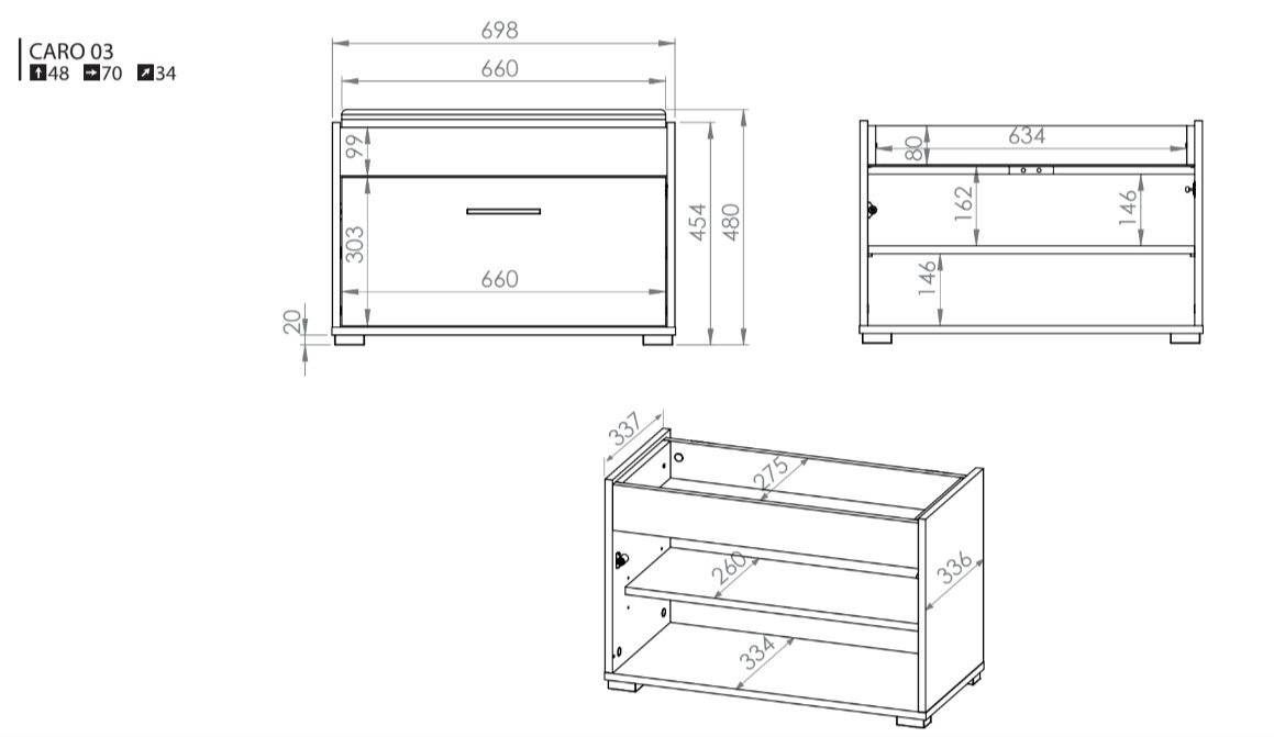 Botník s výklopnými dvířky je vyroben z kvalitního lamina o tl.16 mm v dezénu sonoma světlá. Sedací část botníku je doplněna o pohodlné polstrované sezení v barvě černá. Tento botník je doplněn o černé nožičky a úchytku. Zboží je dodáváno v demontu.
