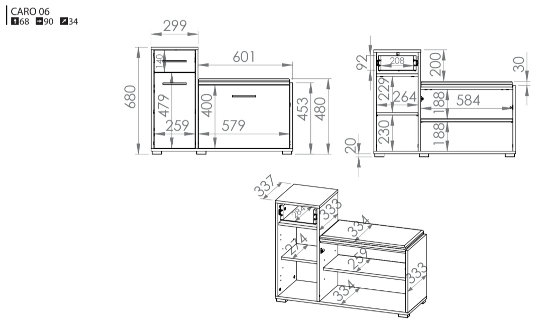 Botník výklopný s dvířky a šuplíkem je vyroben z kvalitního lamina o tl.16 mm v dezénu sonoma světlá. Sedací část botníku je doplněna o pohodlné polstrované sezení v barvě černá. Tento botník je doplněn o černé nožičky a úchytku. Zboží je dodáváno v demontu.