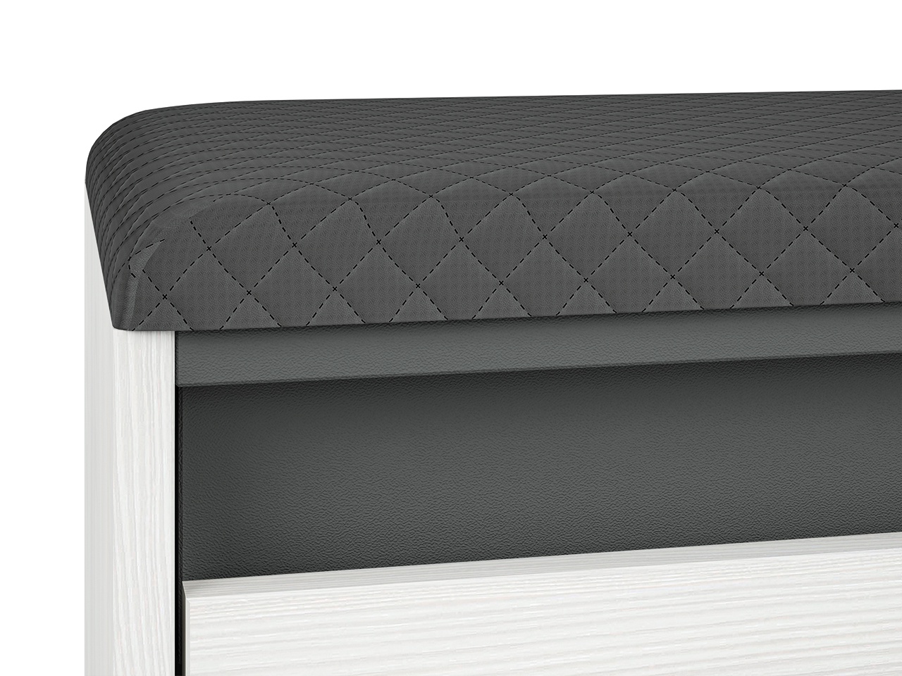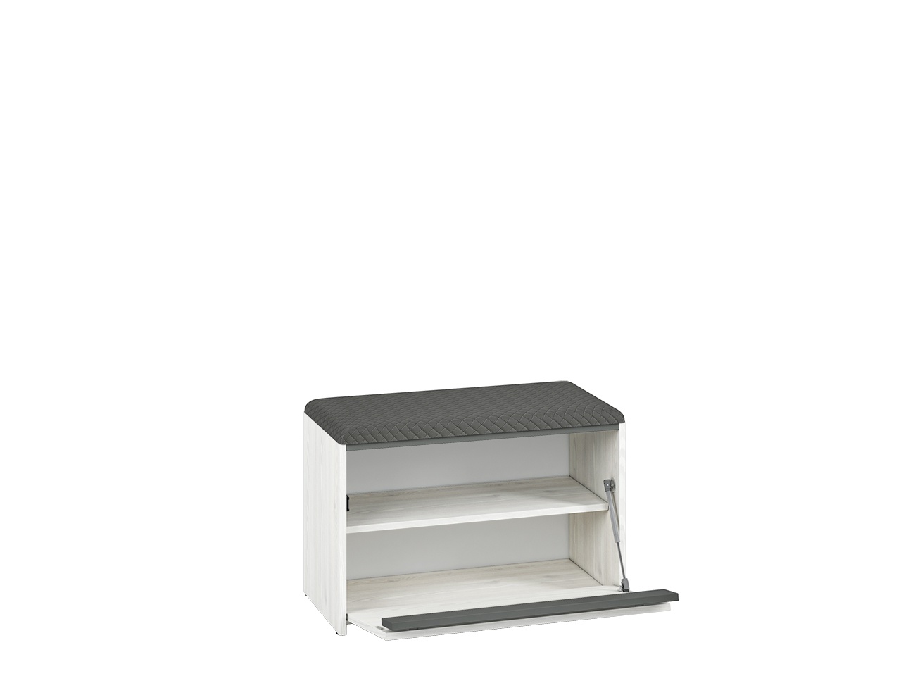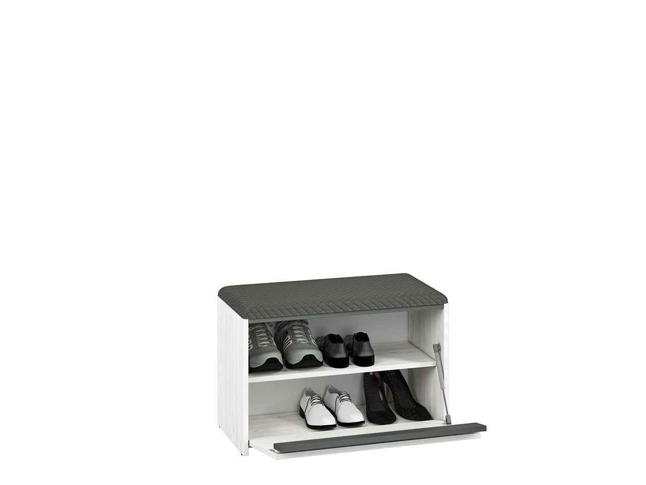 Moderní botník je vyroben z lamina, o tl. 16 mm odolného proti poškrábání a vysoké teplotě, s ABS hranami v barevném provedení borovice sněhová/antracit. Sedák botníku je v barevném provedení šedá. Sestava Hyga je v moderním provedení zútulní Vaši předsíň. Zboží dodáváme v demontu.