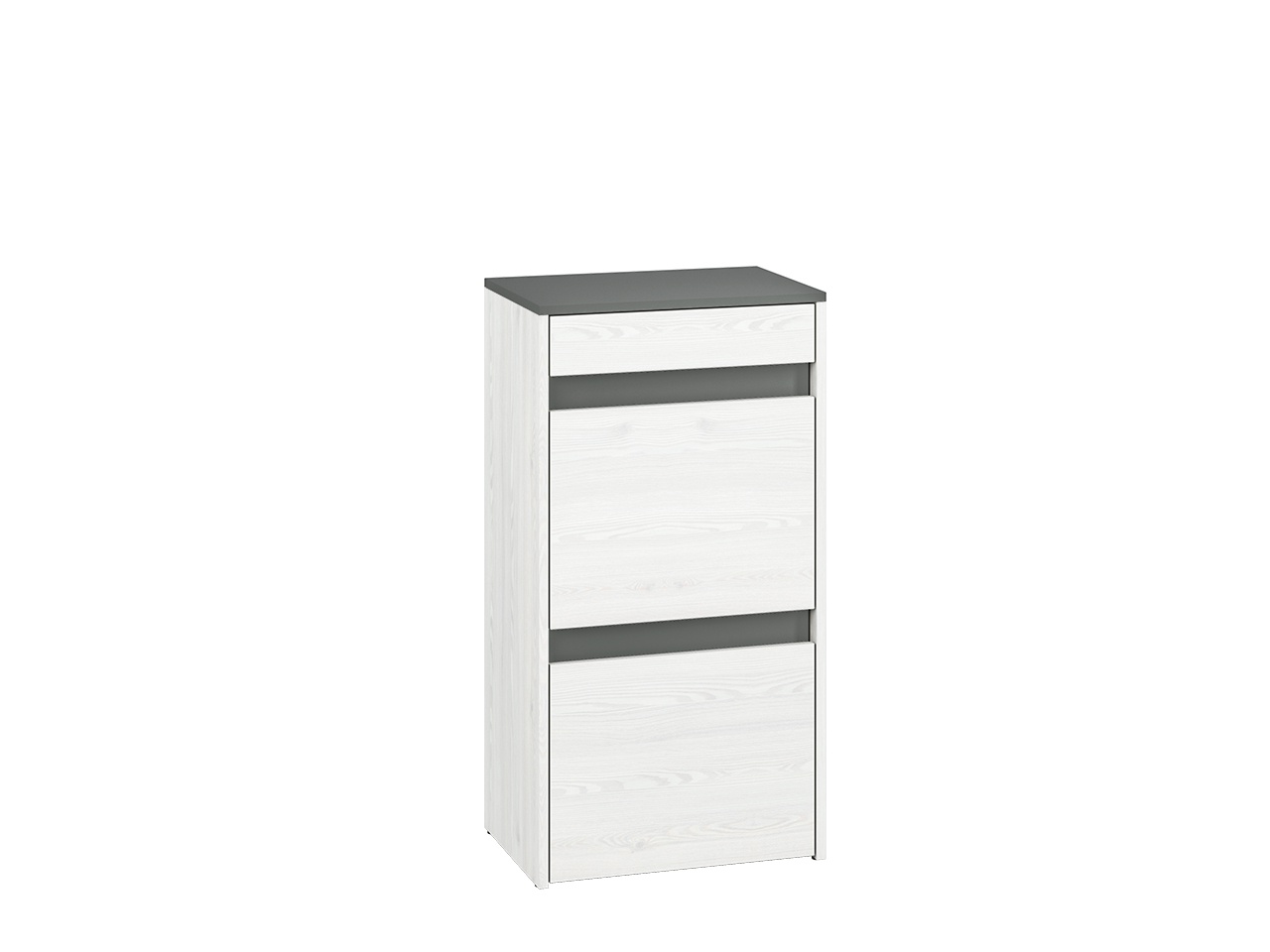 Moderní botník je vyroben z lamina, o tl. 16 mm odolného proti poškrábání a vysoké teplotě, s ABS hranami v barevném provedení borovice sněhová/antracit. Sestava Hyga je v moderním provedení zútulní Vaši předsíň. Zboží dodáváme v demontu.