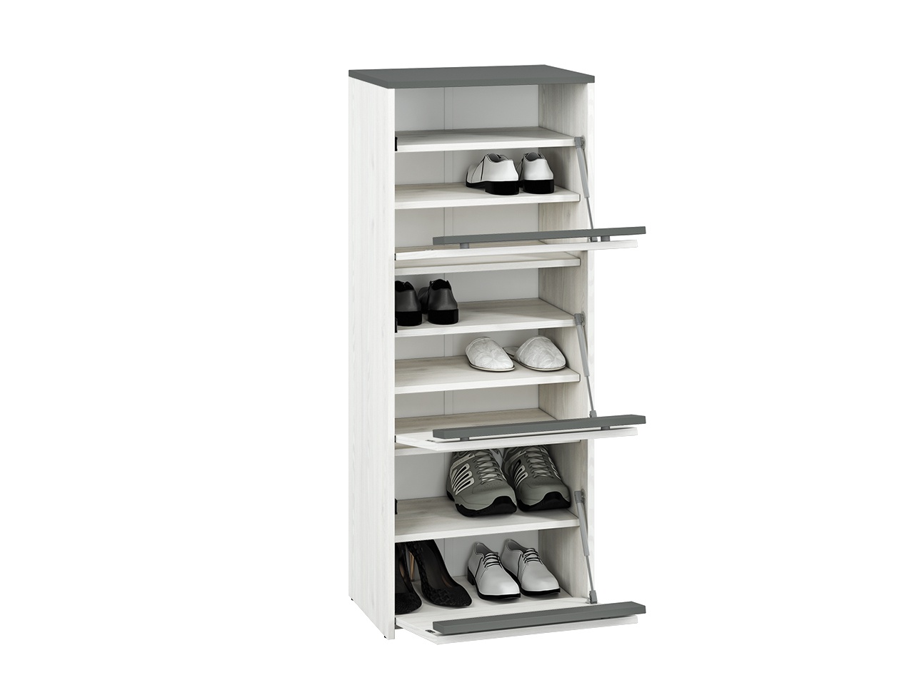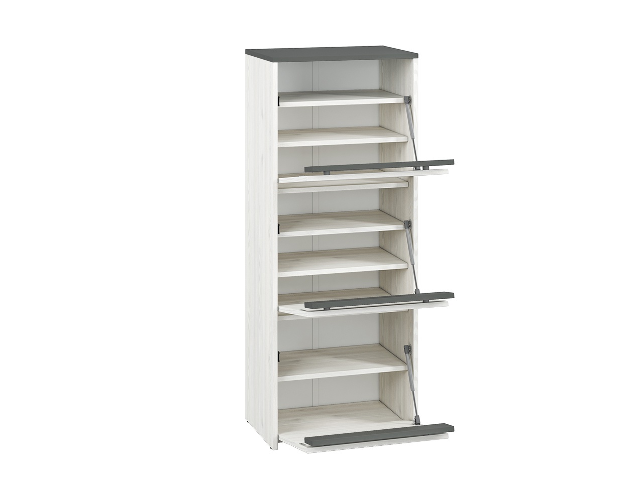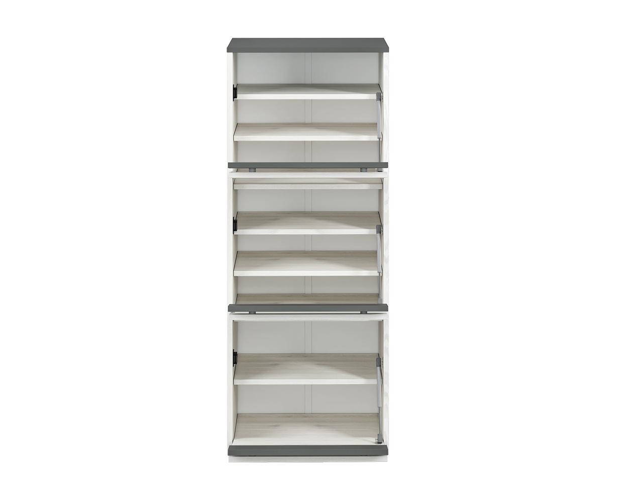 Moderní botník je vyroben z lamina, o tl. 16 mm odolného proti poškrábání a vysoké teplotě, s ABS hranami v barevném provedení borovice sněhová/antracit. Sestava Hyga je v moderním provedení zútulní Vaši předsíň. Zboží dodáváme v demontu.