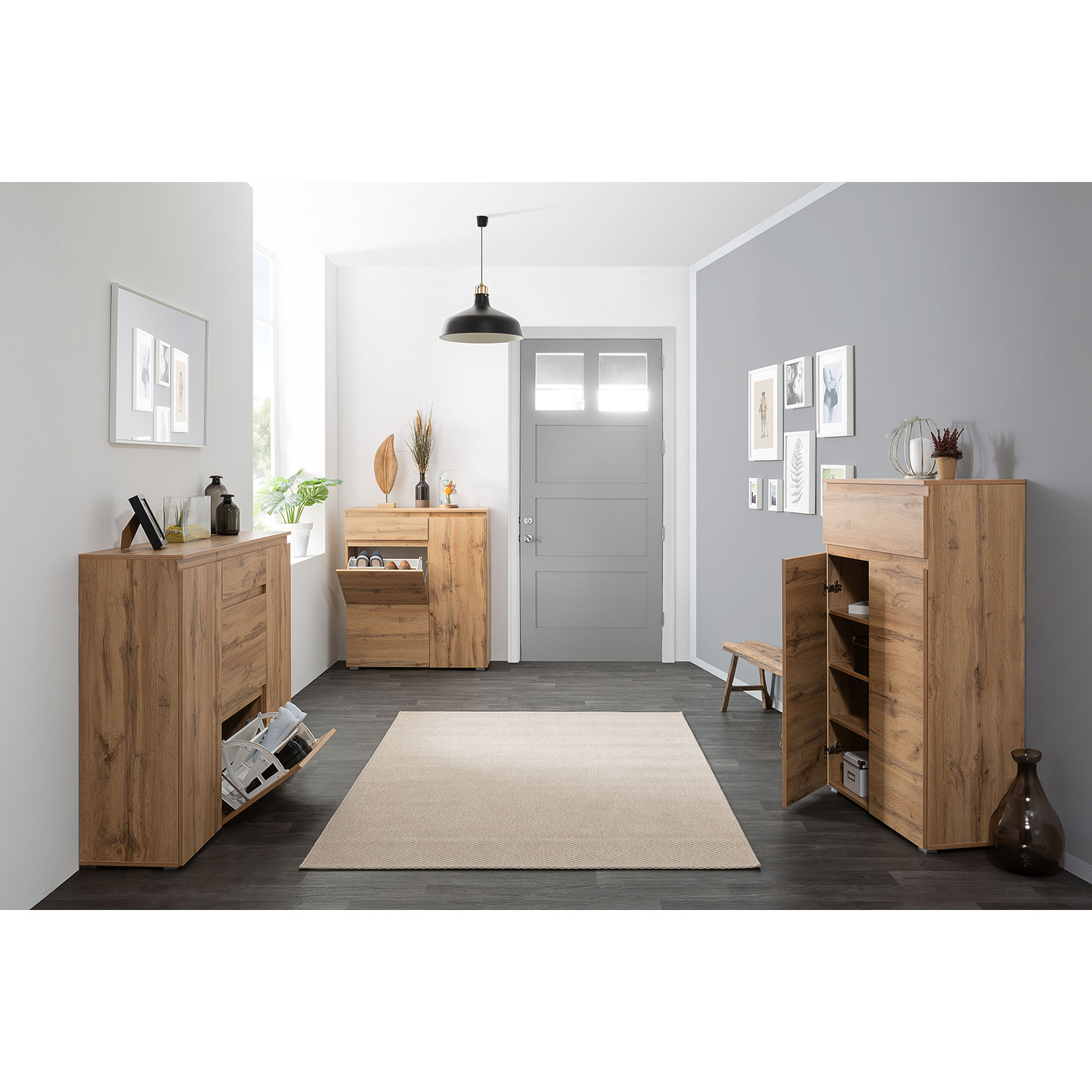 Moderní botník Image je vyroben z lamina v barevném provedení zlatý dub. Botník má 2 dveře, 3 police a 1 široká zásuvka s kovovými pojezdy. Praktický botník Image je skvělou volbou do každé předsíně. Zboží dodáváme v demontu.