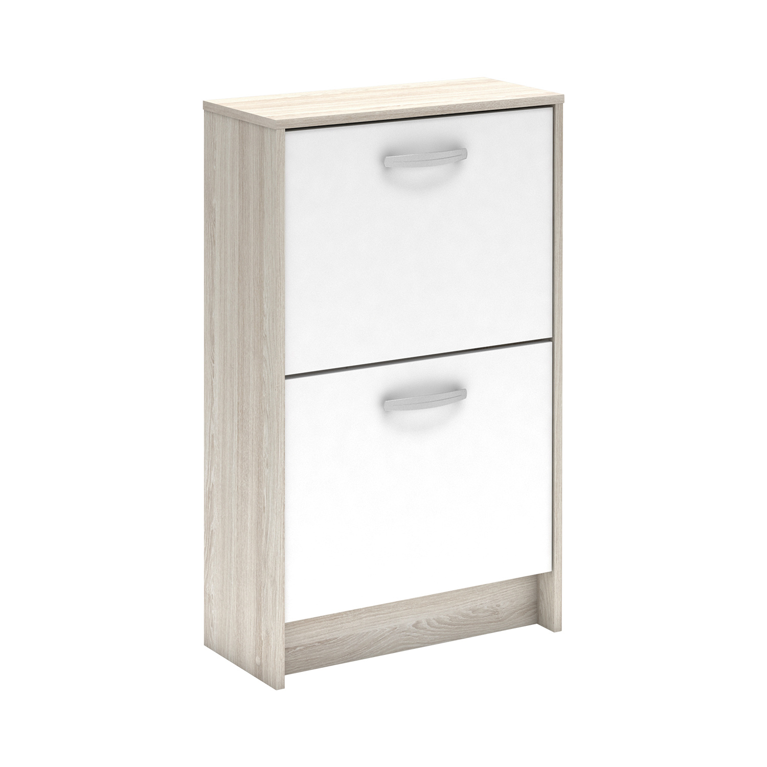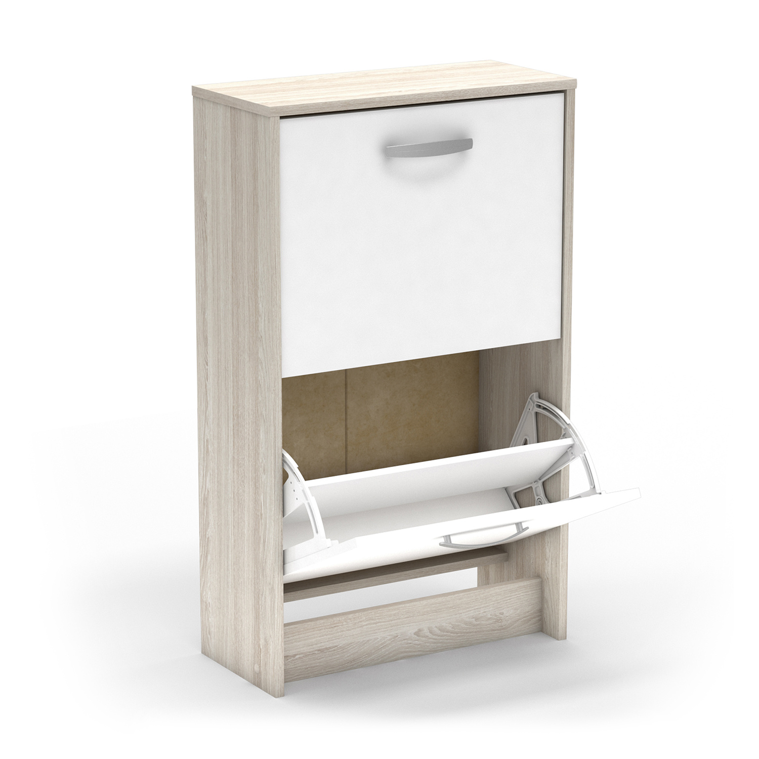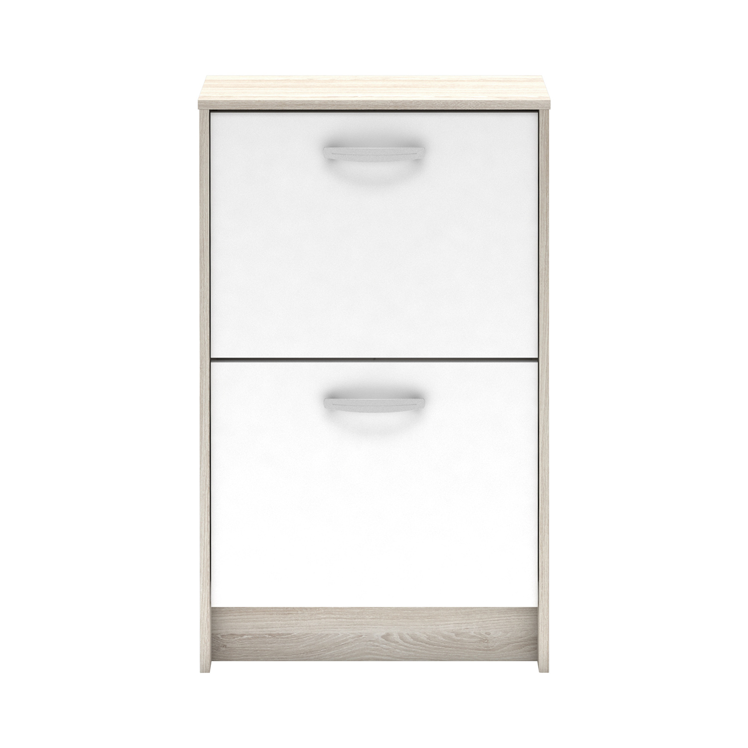 Botník v barevném provedení dub shannon/perleťově bílá se 2 dvouřadými výklopy. Zboží dodáváme v demontu.