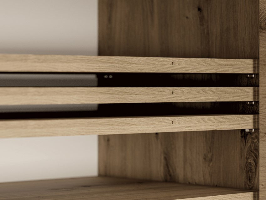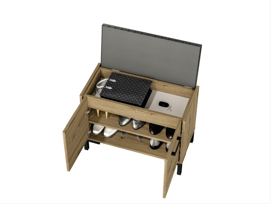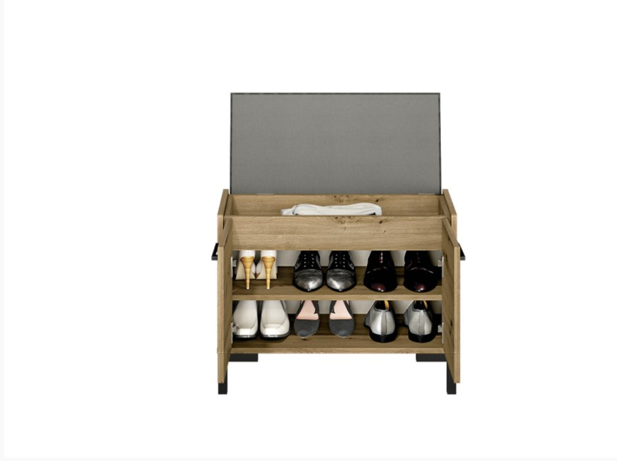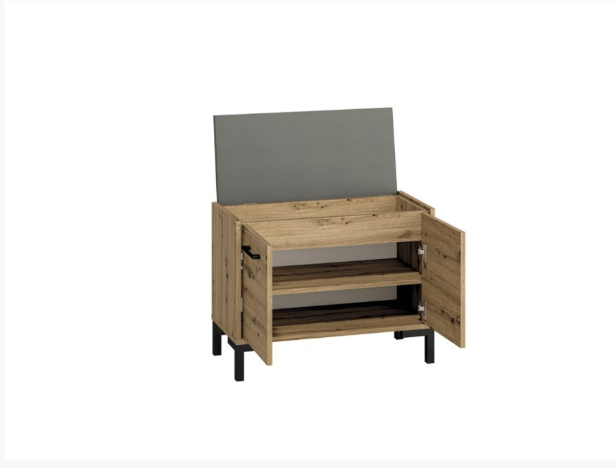 NEVIO je moderní a elegantní kolekce nábytku do předsíně. Kombinace výrazného dekoru dub artisan s černými úchytkami a nohami je dokonalým řešením pro moderní interiér. Díky rozmanitosti systému můžete snadno vybavit malou předsíň i velkou halu. Botník lze použít jako lavici na sezení. Pod čalouněným sedákem v černé barvě je úložný prostor. Zboží je dodáváno v demontu.