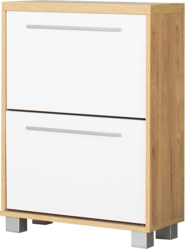 Botník Panama se 2 výklopnými zásuvkami v dezénu dub soma tmavý/ bílý lesk. Zboží dodáváme v demontu.