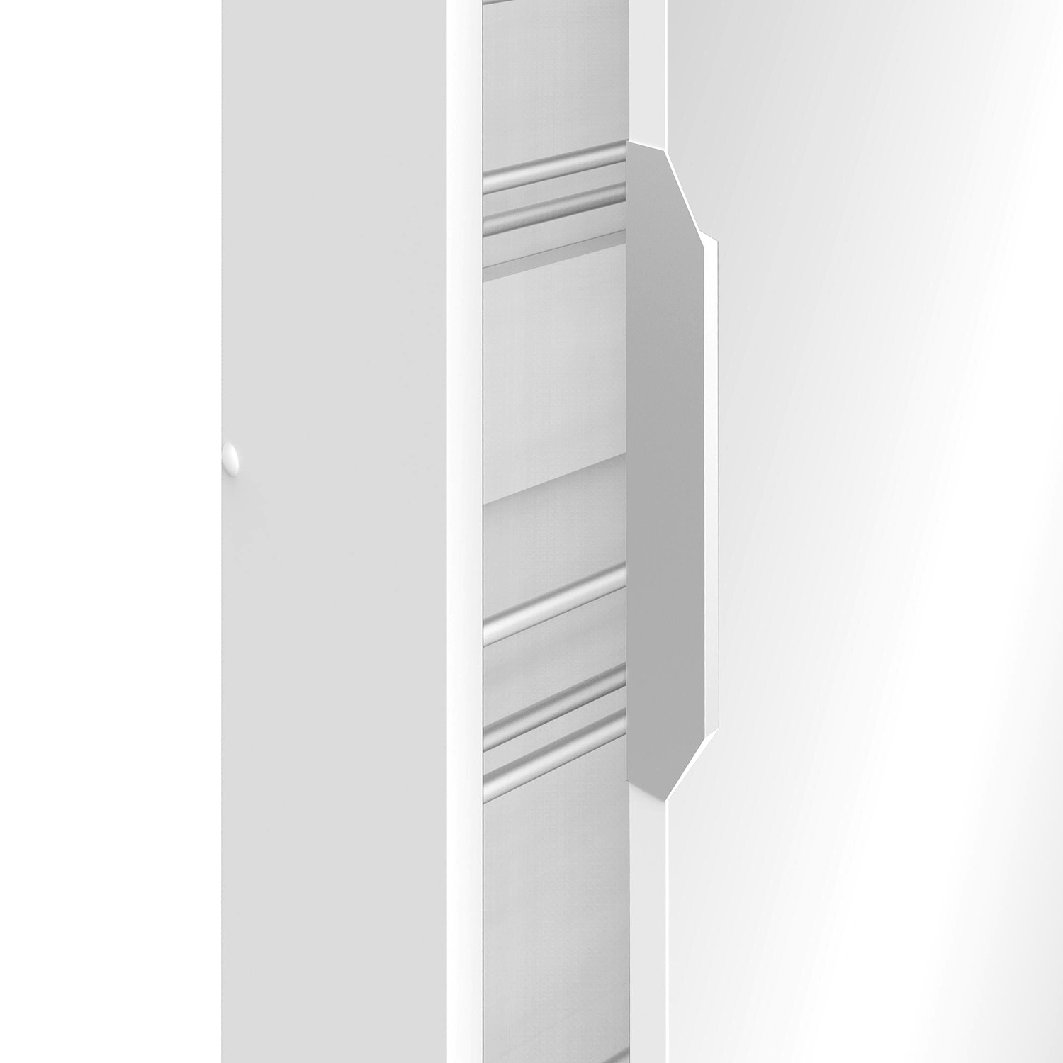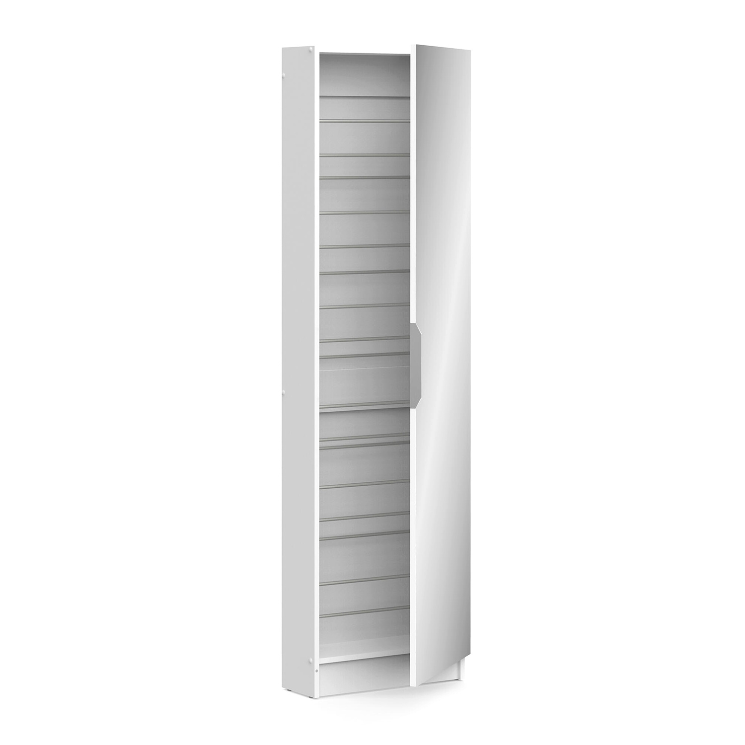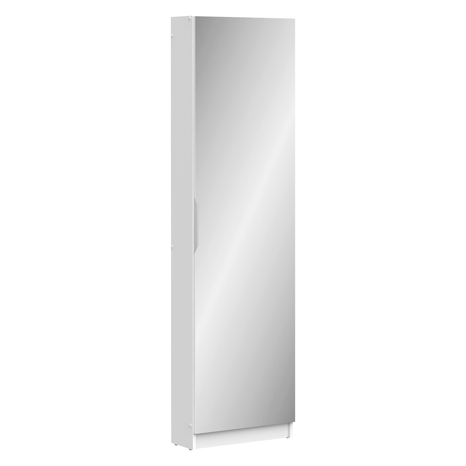 Moderní šestiřadový botník v barevném provedení bílá se zrcadlem 50 × 173 cm, úchytka je kovová. Montáž možná na levou i pravou stranu 6 úrovní pro 12 párů bot. Zboží dodáváme v demontu.