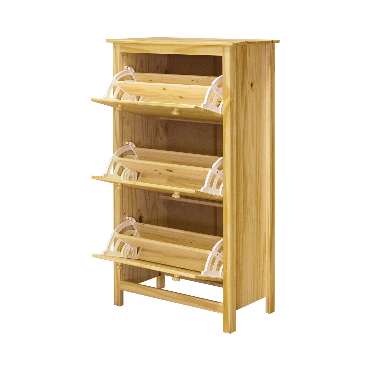 Jednoduchý a praktický botník je vyroben z masivního borovicového dřeva v lakovaném provedení v přírodní barvě. Tři dvouřadé zásuvky nabízí prostor až na 18 párů bot.Tento dřevěný botník je díky univerzálnímu designu vhodný k použití do předsíní, hal nebo garáží k ukládání obuvi. Zboží dodváme v demontu.