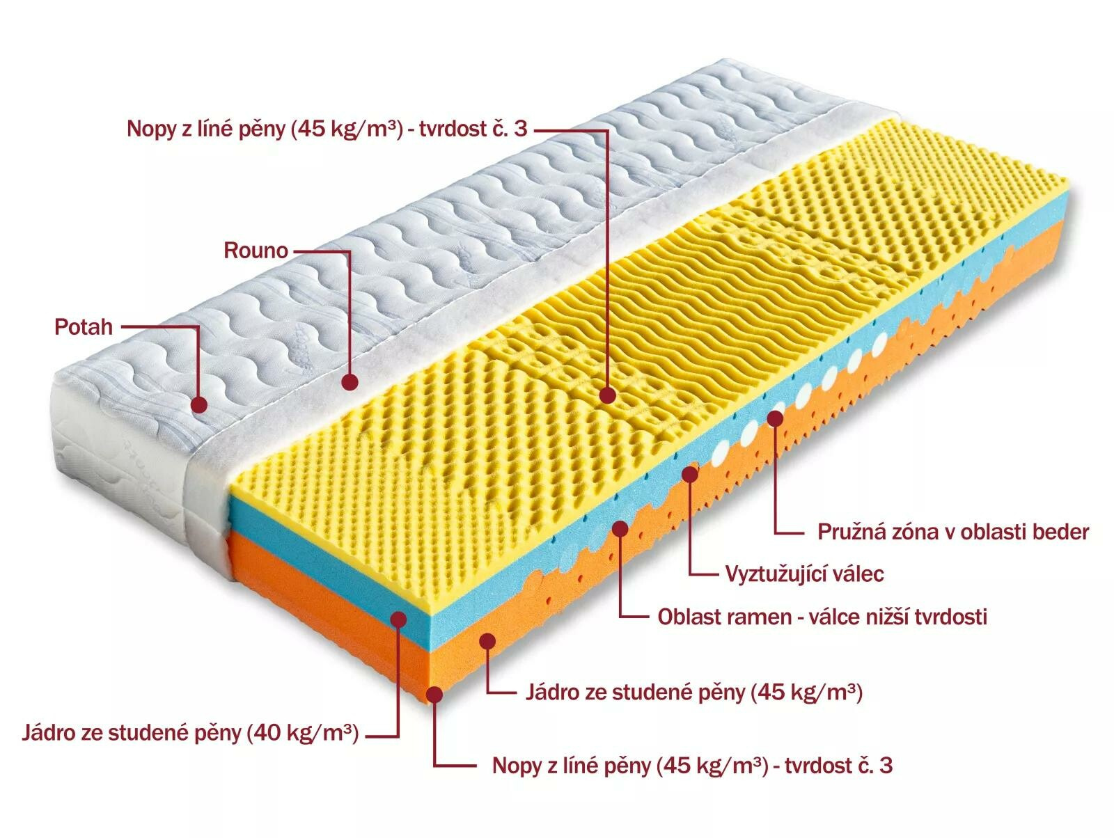 K této matraci nabízíme jako dárek zdarma 1x polštář Lukáš.