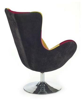 Na stabilní kulaté chromové podnoži je upevněn pohodlný sedák a opěrák s područkami v látkovém provedení v barevném provedení patchword/ černá. Zboží dodáváme v demontu.