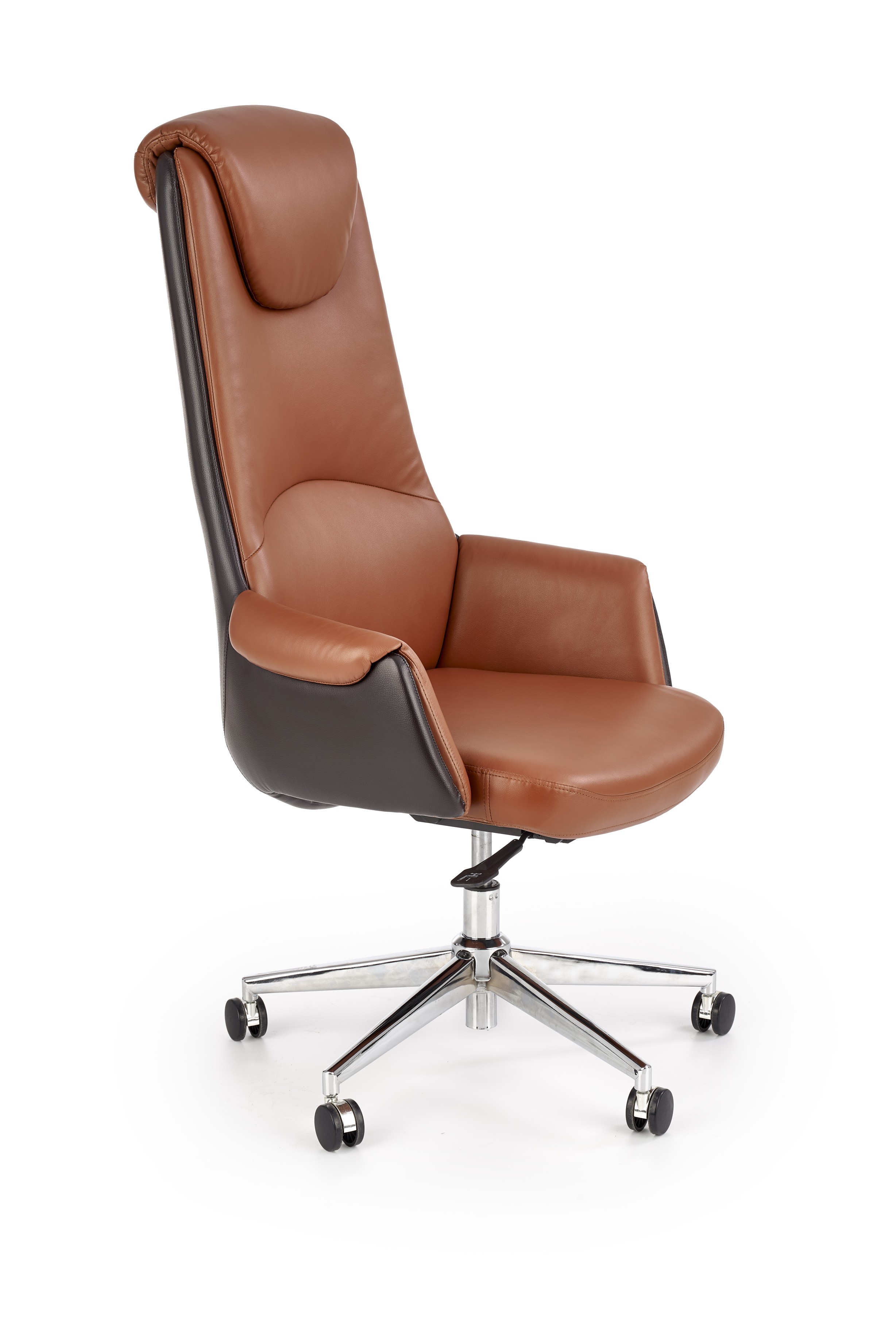 Kancelářské křeslo CALVANO je vyrobeno z eko kůže v kombinaci barev světle a tmavě bronzová. Výškově nastavitelná, funkce multiblock. Zboží je dodáváno v demontu.