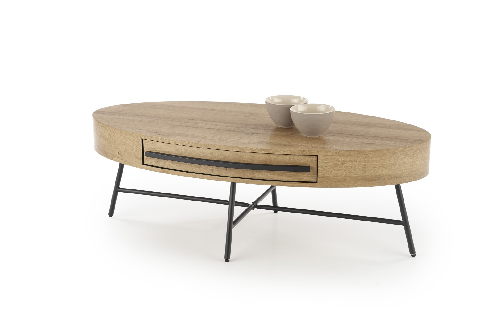 Stolek je vyrobený z dýhované MDF v dekoru: dub zlatý. Stojí na čtyřech nožkách z ocele v černé barvě. Stolek se pyšní praktickým úložným prostorem v podobě dobře skryté zásuvky. Zboží dodáváme v demontu