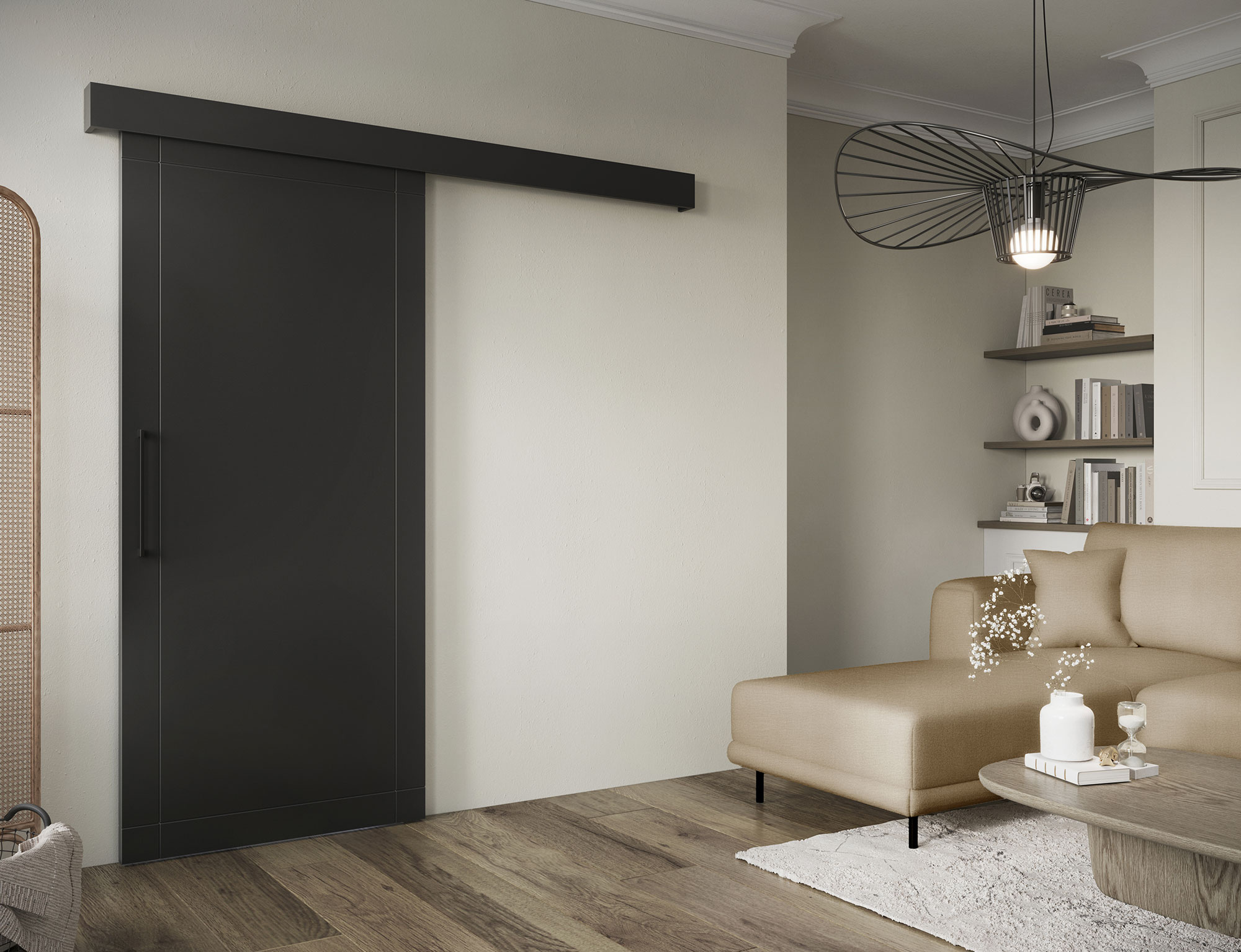 The minimalist design and high-quality materials make Charlise doors ideal for the living room, kitchen, or bedroom. They measure 90 cm in width and 204 cm in height, fitting standard door openings. Made of laminated furniture board, they are available in semi-matte black (Black 190PE).Equipped with the Laguna STANDARD 1990 mechanism with a 195 cm guide rail, Charlise doors slide smoothly and quietly. The set includes a cover made of laminated furniture board and a black plastic handle. The doors have a stopper, a trolley, and a bottom guide, ensuring safety and convenience.Installation is simple, done by mounting to the wall. Charlise sliding doors are the perfect solution for those who value functionality, aesthetics, and modern design.