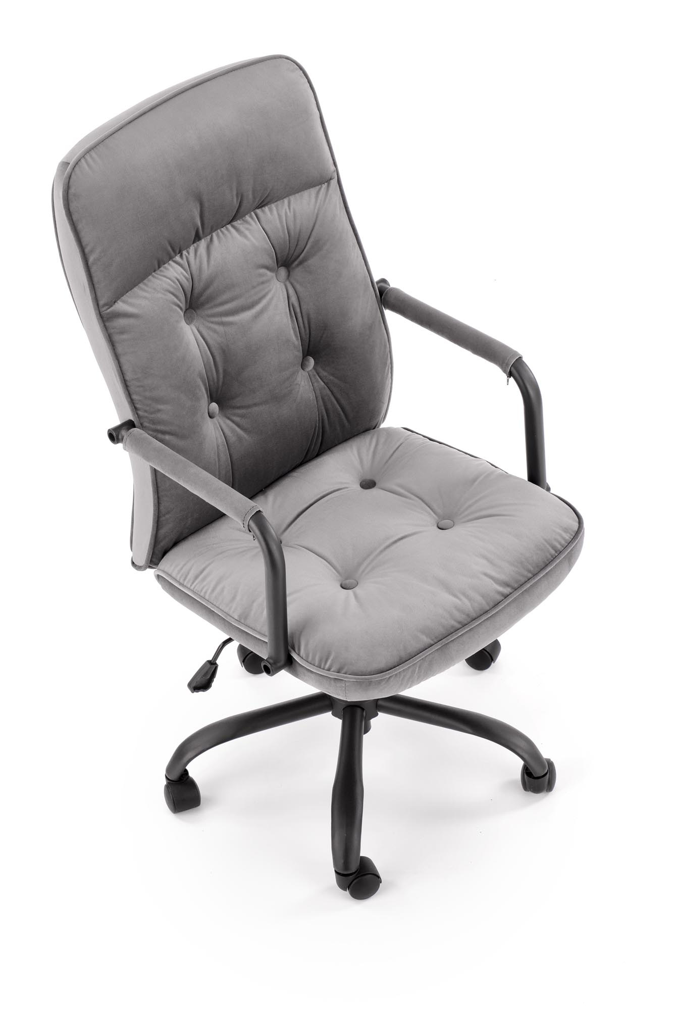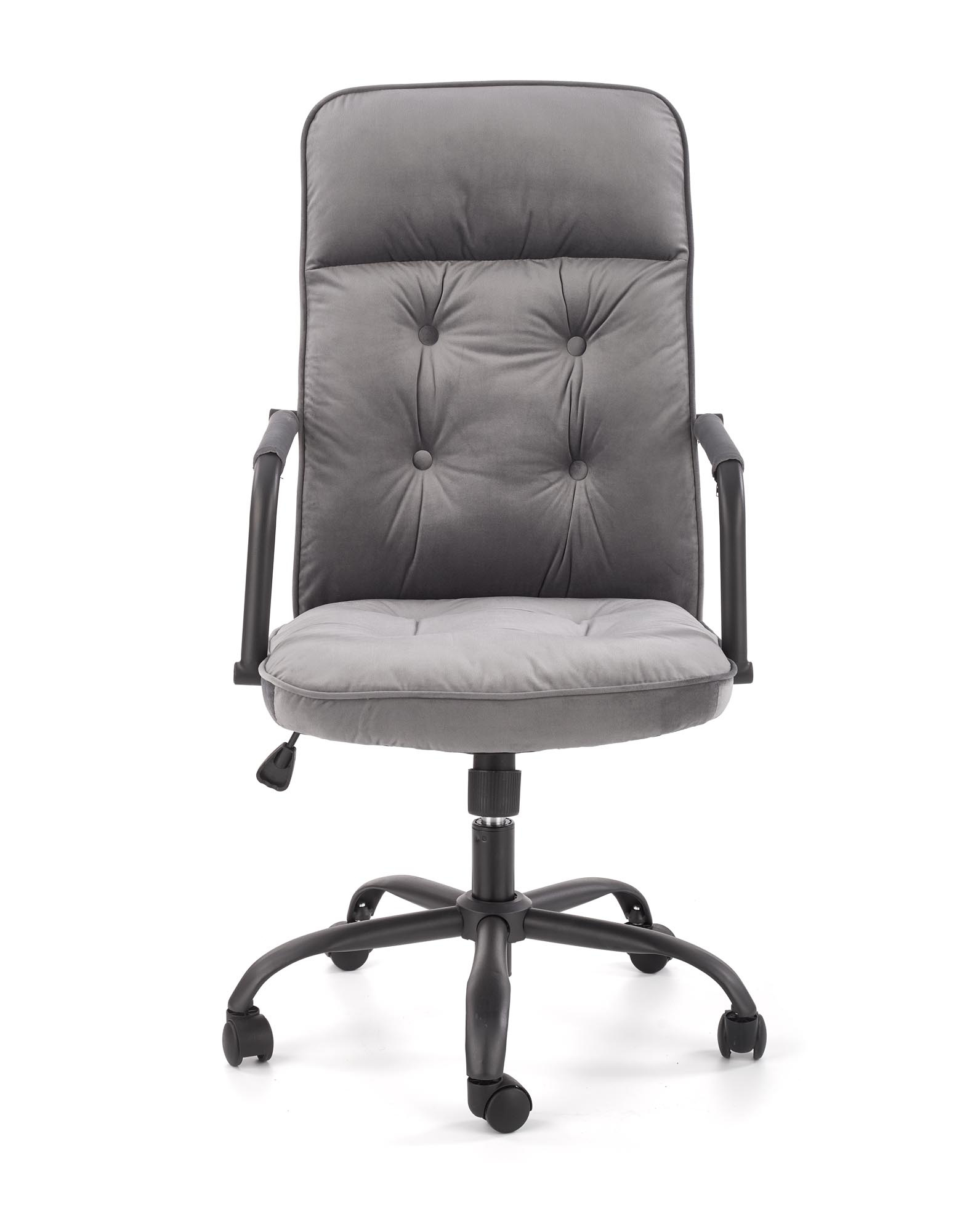 Moderní kancelářské křeslo COLIN je čalouněno příjemnou látkou v barevném provedení: šedá. Stojí na kovovém kříži zakončeném platovými kolečky v černé barvě. Pro maximální pohodlí je křeslo silně vypolstrované, područky jsou potažené látkou a disponuje nastavitelnou výškou sedu.