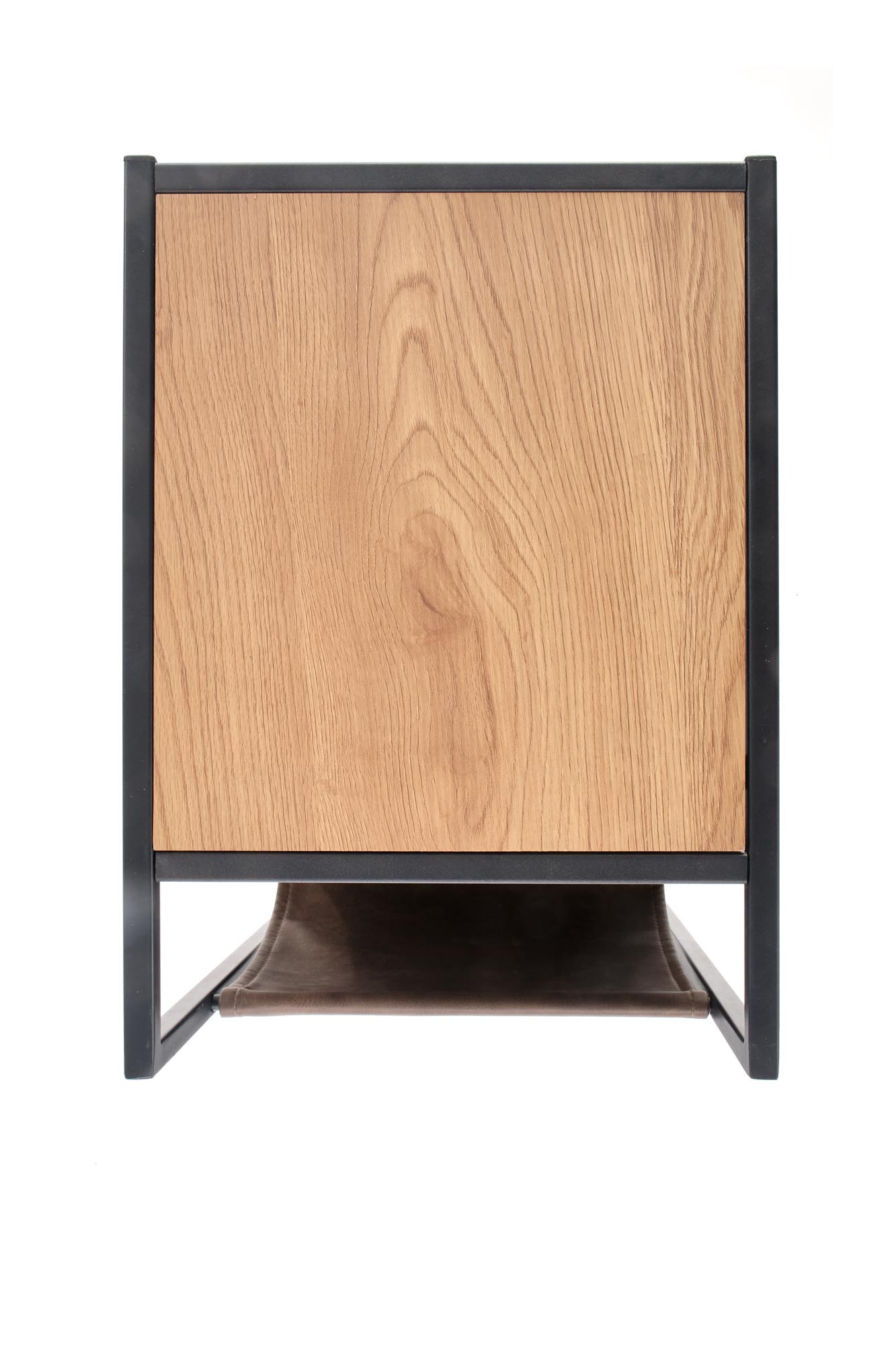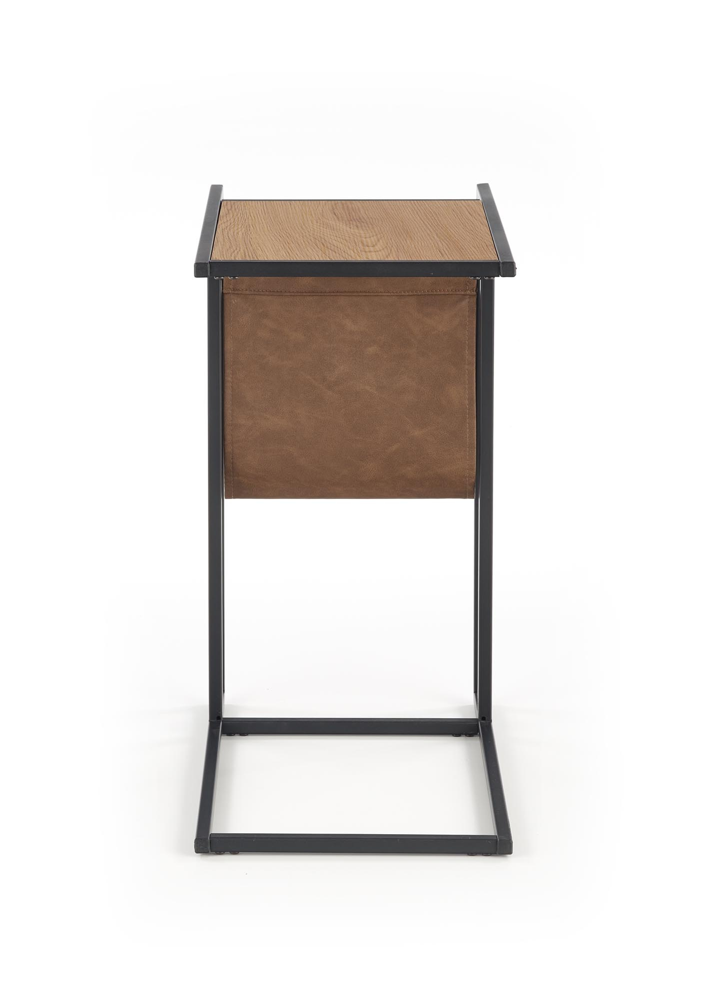 Stolek je vyrobený z dýhované MDF v dekoru: dub zlatý. Konstrukce je z práškově lakované ocele v černé barvě. Stolek disponuje praktickou kapsou z eko kůže.