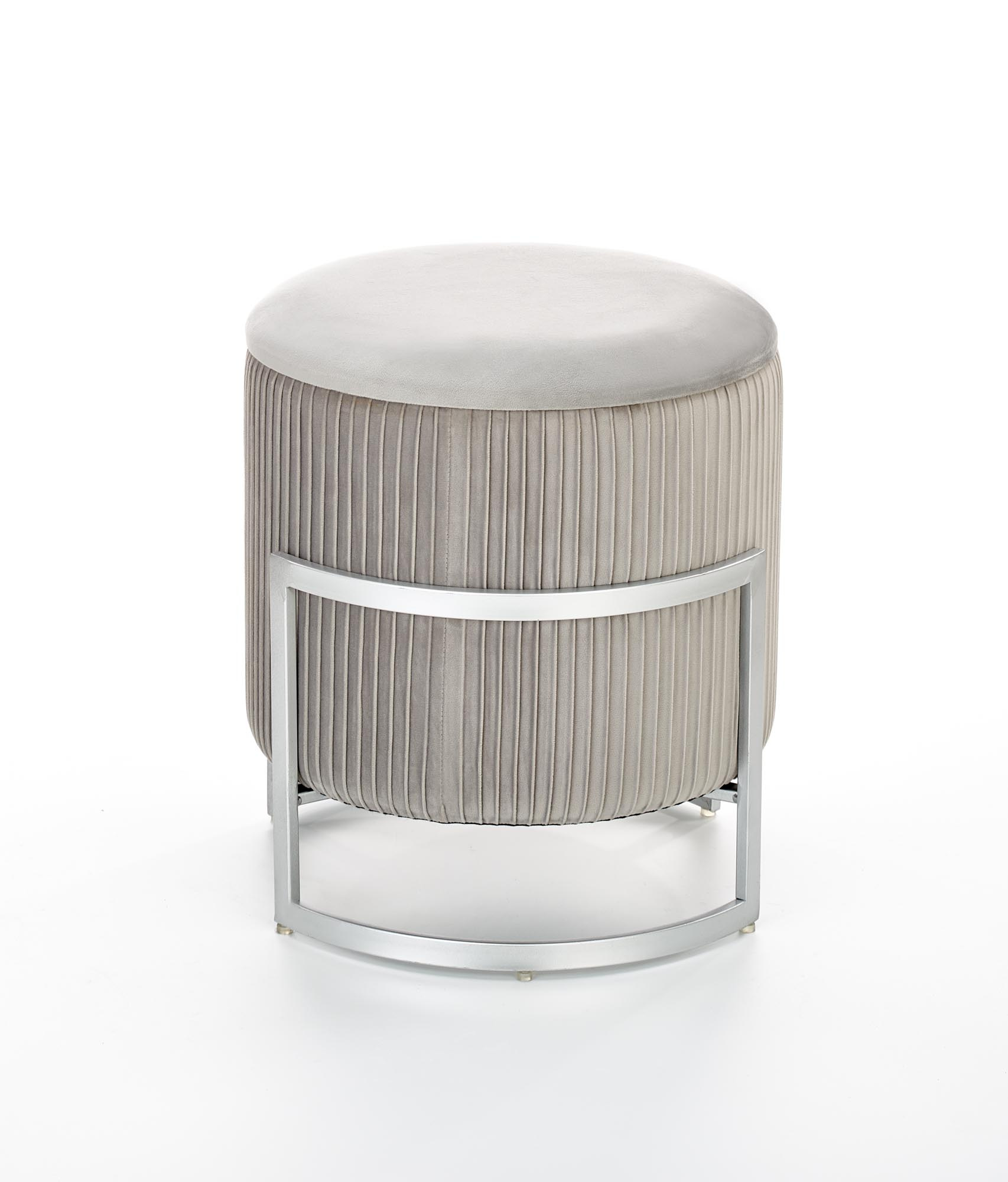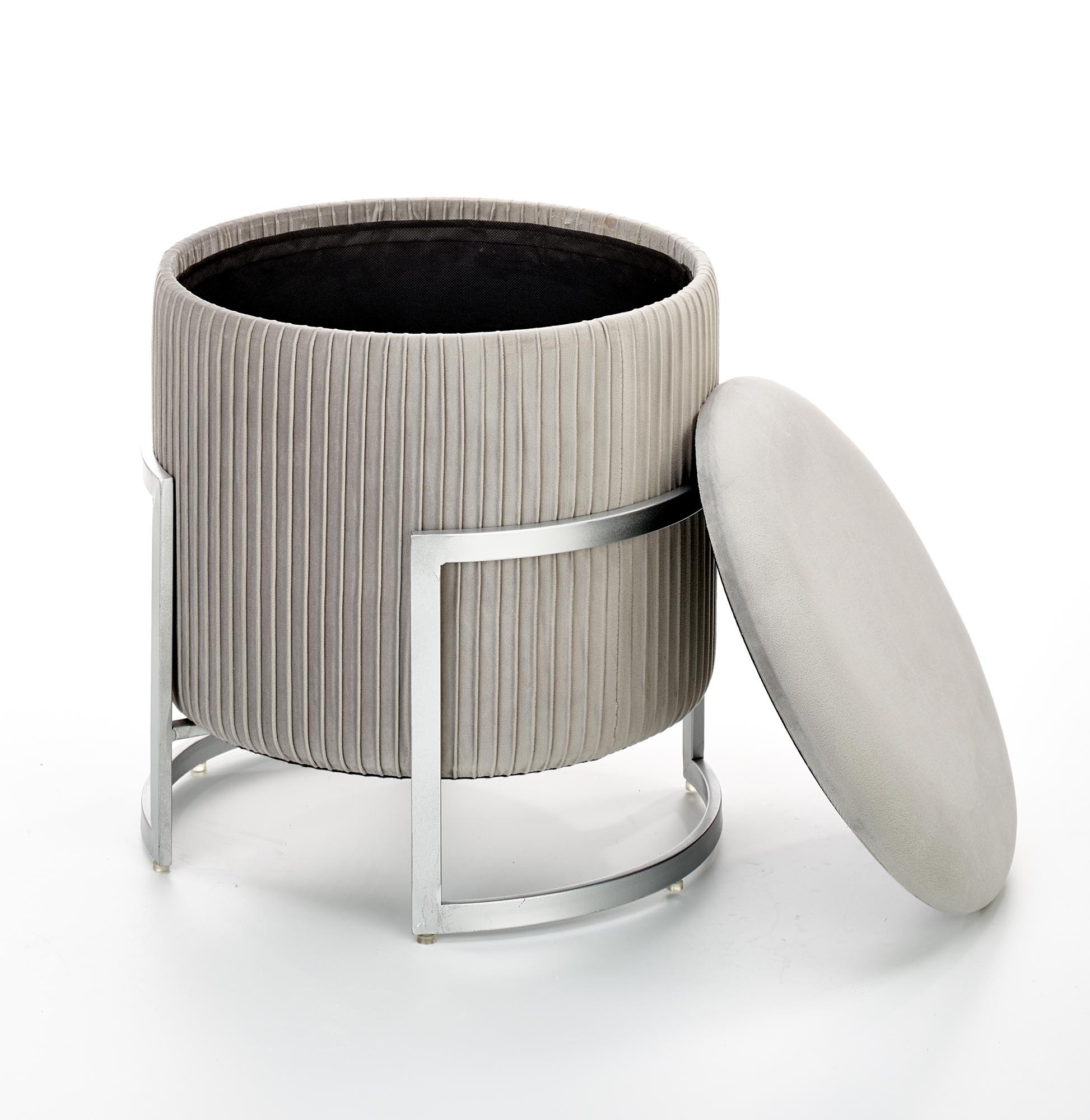 Taburet z materiálu látka velvet šedá/ocel malovaná prášková. Taburet má úložný prostor.