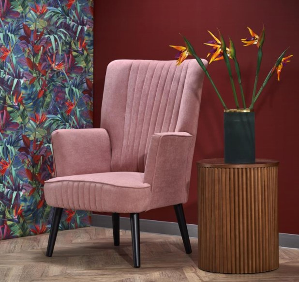 Moderní a jedinečné křeslo DELGADO vás oslní svým designem. Křeslo má konstrukci ze dřeva, sedák s opěradlem je čalouněný sametem v barevném provedení růžová. Sedák i opěrák zdobí prošívání. Zboží dodáváme v demontu.