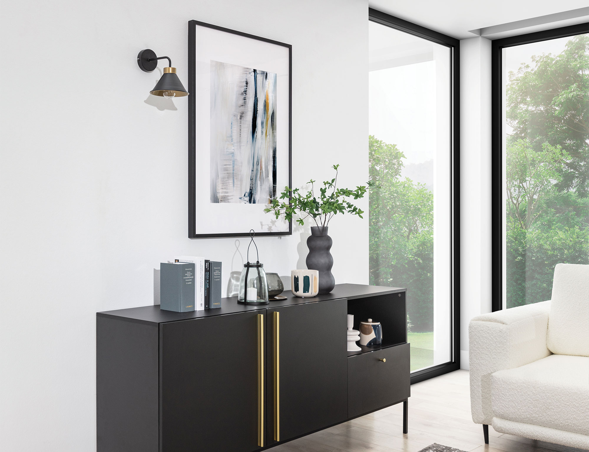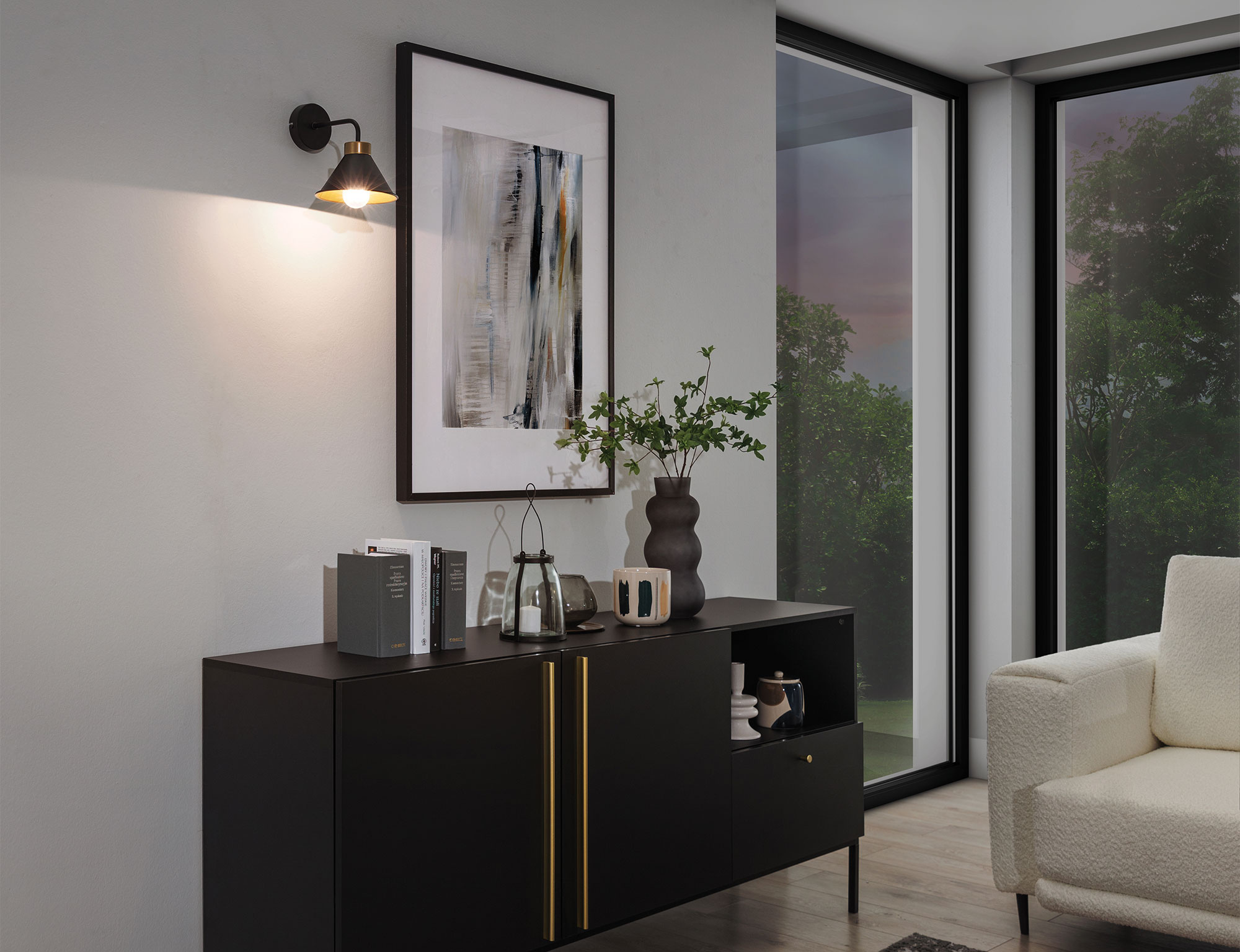The Detmer wall lamp, with dimensions of 17x25x20 cm, features a single light point, ideal for focusing on a specific area. The E27 socket allows for a variety of light sources, and the power limit of 15W enables brightness adjustment according to needs. With an IP20 rating, the wall lamp is suitable for dry interiors, providing not only efficiency but also safety. The unique contrast between black and gold in the Detmer wall lamp gives it a distinctive character and draws attention. It is not just a light source but also a decorative element that can add a unique touch to any interior.