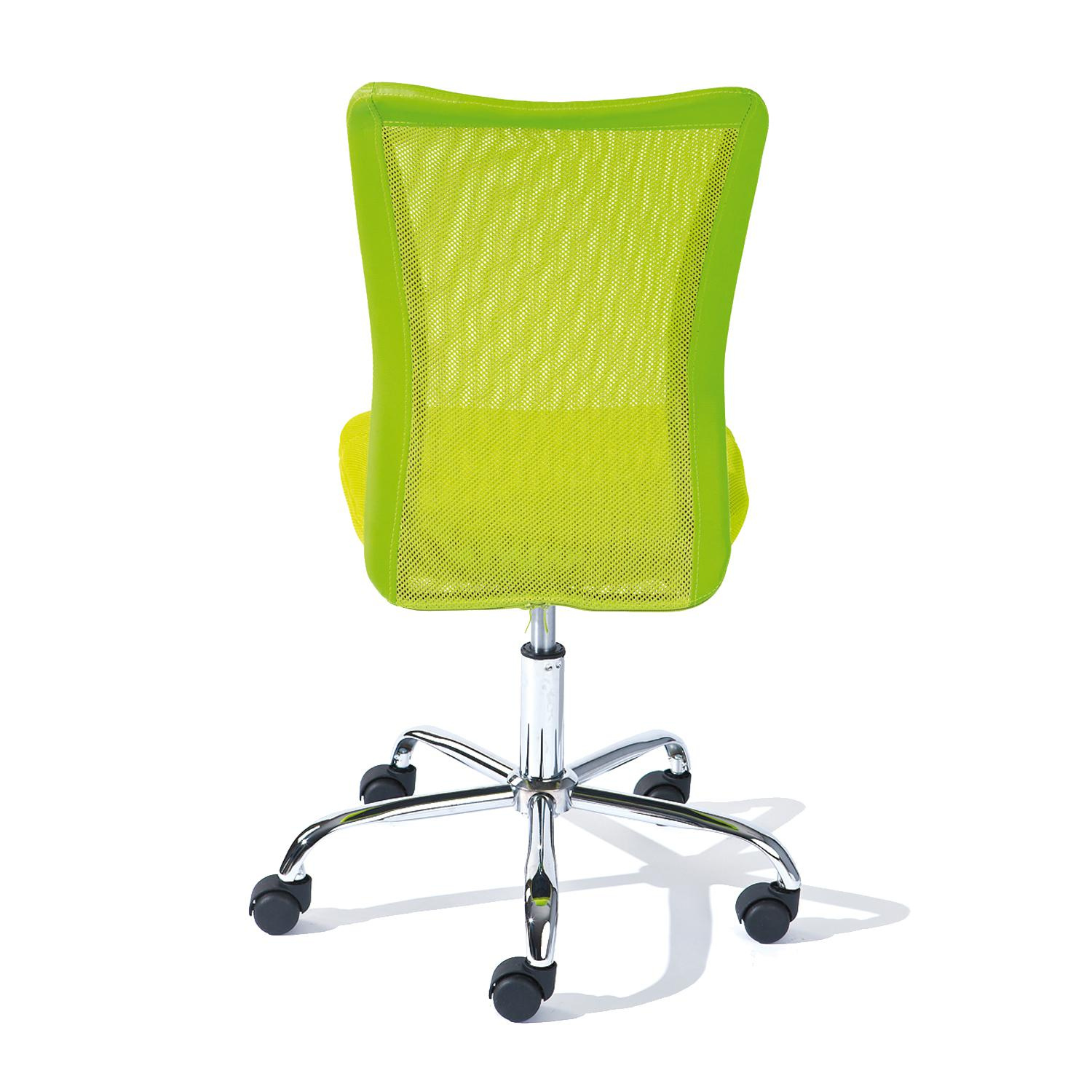 Dětská otočná židle Bonnie je položena na chromovaném kříži, jehož součástí je pět plastových koleček zajišťujících jednoduchou mobilitu židle po prostoru. Sedák i opěrka zad jsou čalouněny textilní síťovinou v dezénu zelená. Výkonný plynový píst umožňuje nastavení výšky židle v rozmezí celých 10 cm. Tato dětská židle Bonnie je díky svému modernímu tvarování a barevnému provedení vhodná do jakéhokoliv dětského pokoje. Maximální nosnost je 80kg. Zboží dodáváme v demontu.