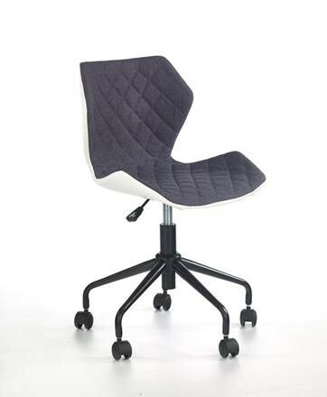Dětská židle je vyrobena eko kůže / tkanina v dezénu bílá/šedá. Její základna je kovová a součást kříže tvoří pět koleček. Židli je možno výškově nastavit díky plynovému pístu, který se ovládá páčkou nacházející se pod sedákem židle. Maximální nosnost 100 kg. Zboží dodáváme v