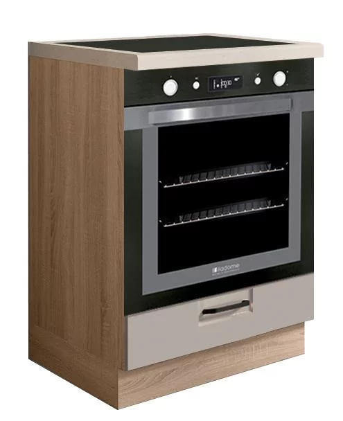 Dolní skříňka na vestavnou troubu se šuplíkem je vyrobena z laminované dřevotřísky v barevném provedení korpus dub sonoma, dvířka šedý lesk. Výhodou systému Favorit je možnost libovolného sestavení skříněk a díky tomu můžete tvořit vybrané kompozice a přizpůsobit je vlastním interiérům. Dolní skříňky jsou bez pracovní desky a soklu. Zboží dodáváme v demontu.