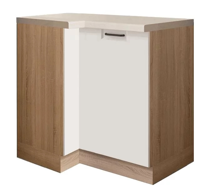 Rohová jednodvéřová dolní skříňka je vyrobena z laminované dřevotřísky v barevném provedení korpus dub sonoma, dvířka bílá lesk. Díky polici uvnitř skříně získáte praktický úložný prostor. Skříně s tichým dovíráním v zásuvkách a dvířkách. Výhodou systému Favorit je možnost libovolného sestavení skříněk a díky tomu můžete tvořit vybrané kompozice a přizpůsobit je vlastním interiérům. Dolní skříňky jsou bez pracovní desky a soklu. Zboží dodáváme v demontu.