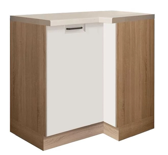 Rohová jednodvéřová dolní skříňka je vyrobena z laminované dřevotřísky v barevném provedení kospus dub sonoma, dvířka bílá lesk. Díky polici uvnitř skříně získáte praktický úložný prostor. Skříně s tichým dovíráním v zásuvkách a dvířkách. Výhodou systému Favorit je možnost libovolného sestavení skříněk a díky tomu můžete tvořit vybrané kompozice a přizpůsobit je vlastním interiérům. Dolní skříňky jsou bez pracovní desky a soklu. Zboží dodáváme v demontu.