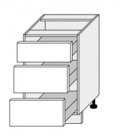 Korpus dolní skříňky je vyroben z lamina nejvyšší kvality o tloušťce 18 mm v dezénu dle výběru. Možnost výběru provedení čel šuplíků z dub artisan nebo dub artisan/ černá. Panty blum clip. Zadní část skříňky je vyrobena z materiálu sololit v bílé barvě. Nosnost polic je max 15-25kg. Dolní skříňky jsou dodávány bez pracovní desky. Dolní skříňka je součástí kuchyně Fiuggi, která se dá sestavit dle vašeho přání. Zboží dodáváme v demontu.
