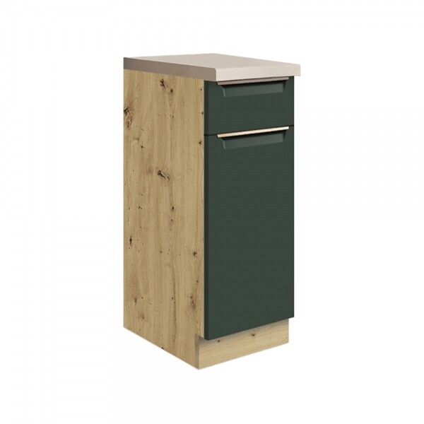 Korpus je vyroben z kvalitní laminátové dřevotřísky o síle 16 mm. Záda zpevňují HDF desky s omyvatelnou vnitřní stranou. Dvířka jsou z MDF desek o síle 16 mm. Dvířka skříněk jsou univerzální a lze je namontovat na levou i pravou stranu. Výšku spodních skříněk si můžete výškově regulovat díky štelovacím nožičkám. Cena nezahrnuje pracovní kuchyňskou desku a sokl. Kuchyni Glamour si můžete doplnit praktickými ostrůvky. Zboží dodáváme v demontu.