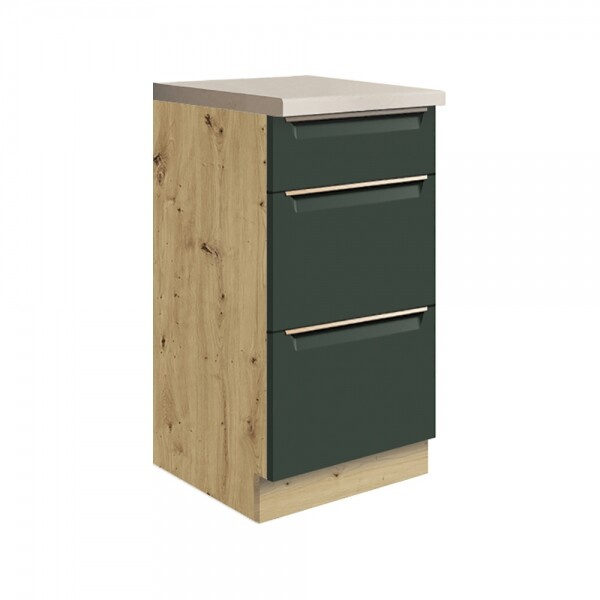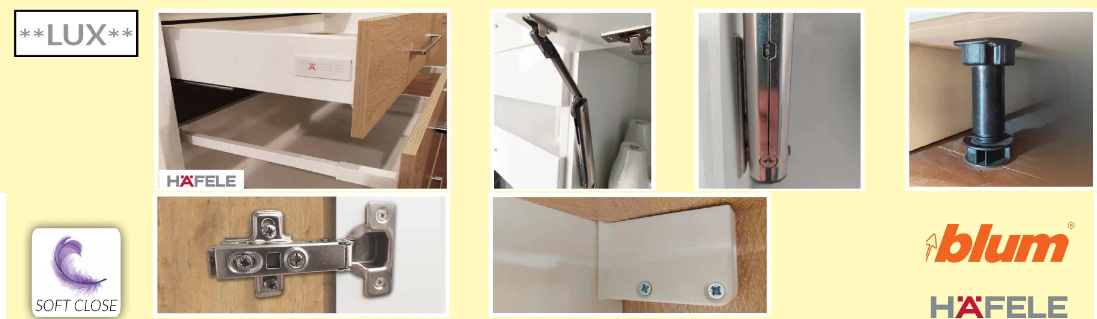 Korpus je vyroben z kvalitní laminátové dřevotřísky o síle 16 mm. Záda zpevňují HDF desky s omyvatelnou vnitřní stranou. Dvířka jsou z MDF desek o síle 16 mm. Dvířka skříněk jsou univerzální a lze je namontovat na levou i pravou stranu. Výšku spodních skříněk si můžete výškově regulovat díky štelovacím nožičkám. Cena nezahrnuje pracovní kuchyňskou desku a sokl. Kuchyni Glamour si můžete doplnit praktickými ostrůvky. Zboží dodáváme v demontu.