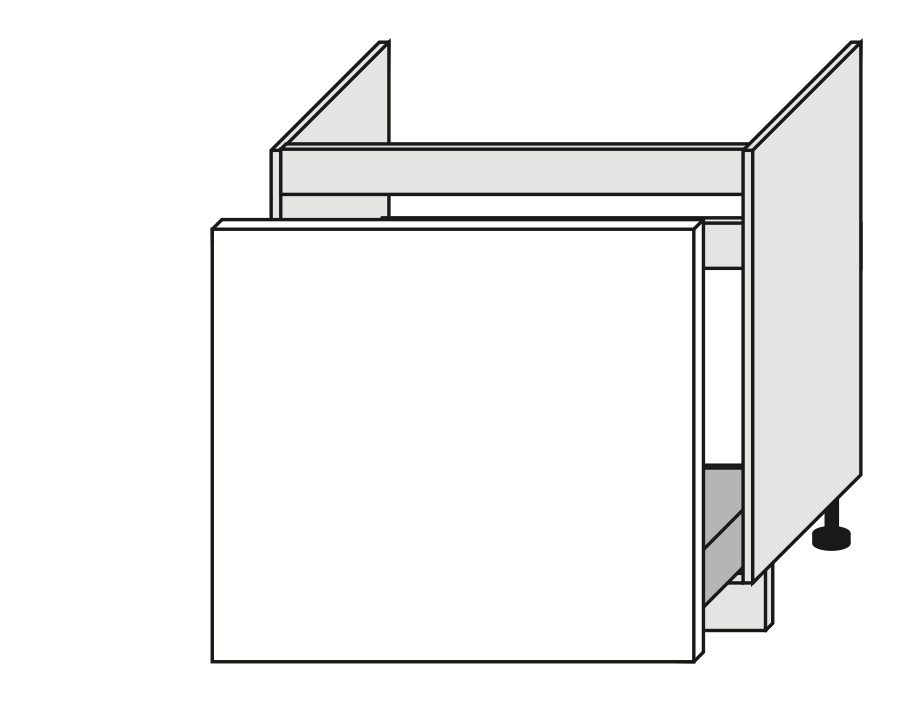 Korpus skříňky je vyroben z lamina nejvyšší kvality o tloušťce 18 mm dle výběru. Dvířka mají mírně zaoblené hrany a jsou vyrobeny z materiálu MDF a jsou oblepeny vysoce kvalitní fólií PVC v matné barvě dle výběru. ABS hrany 0,5mm. Z vnitřní strany jsou dvířka potaženy bílým laminátem. Zadní část skříňky je vyrobena z materiálu - sololit v bílé barvě. Dolní skříňka je součástí kuchyně EMPORIUM která se dá sestavit dle vašeho přání. Součástí skříňky není pracovní deska. Zboží dodáváme v demontu.