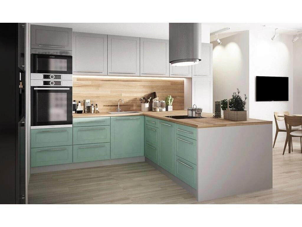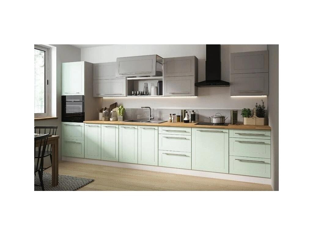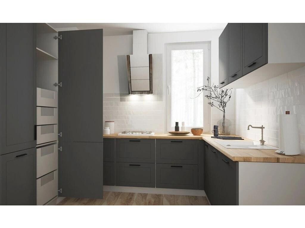 Korpus je vyroben z kvalitního lamina v tl.18 mm v dezénu dle výběru, odolné proti oděru a škrábancům. Dvířka z materiálu MDF jsou oblepena PVC fólií s matnou, vysoce kvalitní strukturou v tl.16mm. Jemný profil frézování dvířek dodává kuchyni velmi elegantní nádech. Kovové úchyty typu RellingDolní skříňky kuchyně QUANTUM jsou dodávány bez pracovní desky, včetně soklu a bez spotřebičů. Zboží dodáváme v demontu.