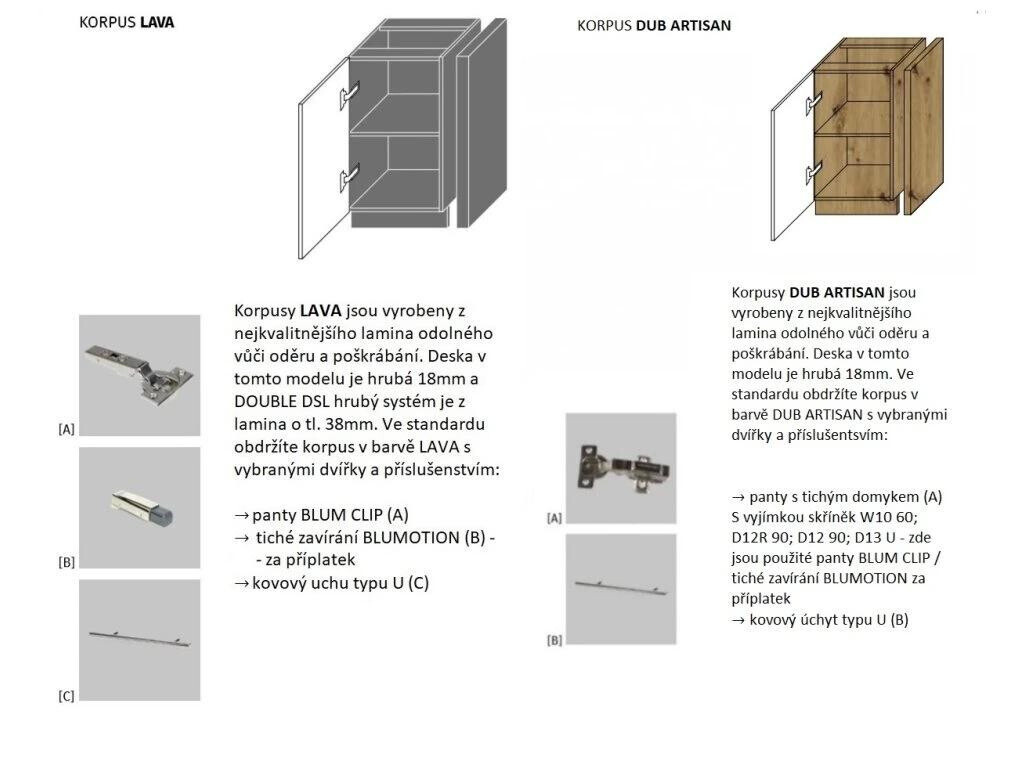 korpus LAVA a GREY - kvalitní závěsy BLUM bez tichého dovíraní dvířek (možnost doobjednat tichý doraz BLUMOTION)