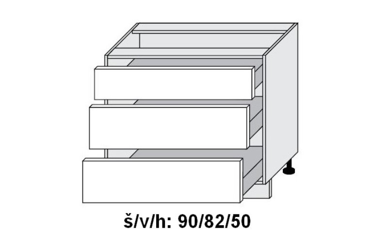Korpus je vyroben z kvalitního lamina v tl.18 mm v dezénu dle výběru, odolné proti oděru a škrábancům. Dvířka z materiálu MDF jsou oblepena PVC fólií s matnou, vysoce kvalitní strukturou v tl.16mm. Jemný profil frézování dvířek dodává kuchyni velmi elegantní nádech. Kovové úchyty typu Relling. Dolní skříňky kuchyně QUANTUM jsou dodávány bez pracovní desky, včetně soklu a bez spotřebičů. Zboží dodáváme v demontu.