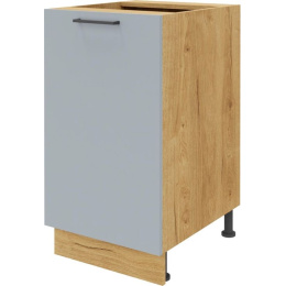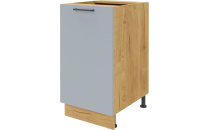 Dolní skříňka je vyrobena z lamina v provedení korpus dub soma tmavý o tl. 16mm, dvířka MDF šedá. Ve skříňce je použito kování s tichým dojezdem. Možnost otvírání dvířek pravé/ levé. Nožky jsou v barvě chromu. Skříňky obsahují kompletní kování, úchytky a návod k sestavení. Cena je bez soklu a pracovní desky- nutno objednat zvlášť. Zboží dodáváme v demontu.