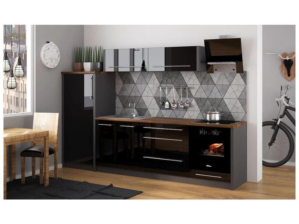 Korpus je vyroben z kvalitního lamina v tl.18 mm v dezénu dle výběru, odolné proti oděru a škrábancům. Dvířka mají zaoblené hrany a jsou vyhotovenyz MDF desky + PVC fólie ve vysokém lesku. Kovové úchyty typu Relling. Dolní skříňky kuchyně PLATINIUM jsou dodávány bez pracovní desky, včetně soklu a bez spotřebičů. Zboží dodáváme v demontu.