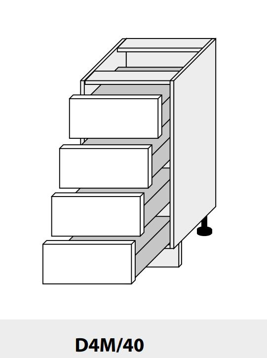 Korpus je vyroben z kvalitního lamina v tl.18 mm v dezénu dle výběru, odolné proti oděru a škrábancům. Dvířka mají zaoblené hrany a jsou vyhotovenyz MDF desky + PVC fólie ve vysokém lesku. Kovové úchyty typu Relling. Dolní skříňky kuchyně PLATINIUM jsou dodávány bez pracovní desky, včetně soklu a bez spotřebičů. Zboží dodáváme v demontu.