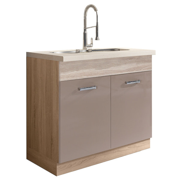 Praktická dvoudvéřová dolní skříňka dřezová je vyrobena z laminované dřevotřísky v barevném provedení dub sonoma/cappuccino lesk. Skříně s tichým dovíráním v zásuvkách a dvířkách. Výhodou systému Premio je možnost libovolného sestavení skříněk a díky tomu můžete tvořit vybrané kompozice a přizpůsobit je vlastním interiérům. Dolní skříňky jsou bez pracovní desky a soklu. Zboží dodáváme v demontu.